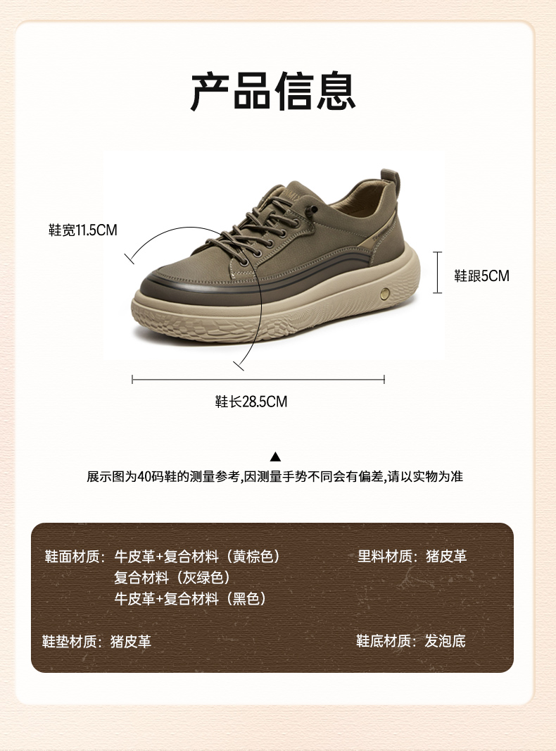 | 40码鞋长参考(男):28.5CM | 鞋帮:低帮 | 鞋头款式:圆头 | 鞋底材质:发泡底 | 鞋面图案:纯色 |