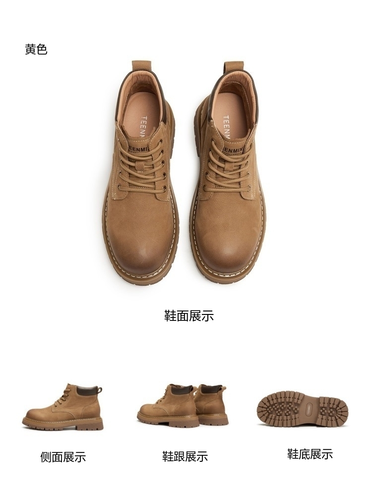 | 跟高数值:4CM | 色系:黄色 | 性别:男子 | 筒高数值:11.5CM | 靴筒筒面材质:人造革牛皮革 |