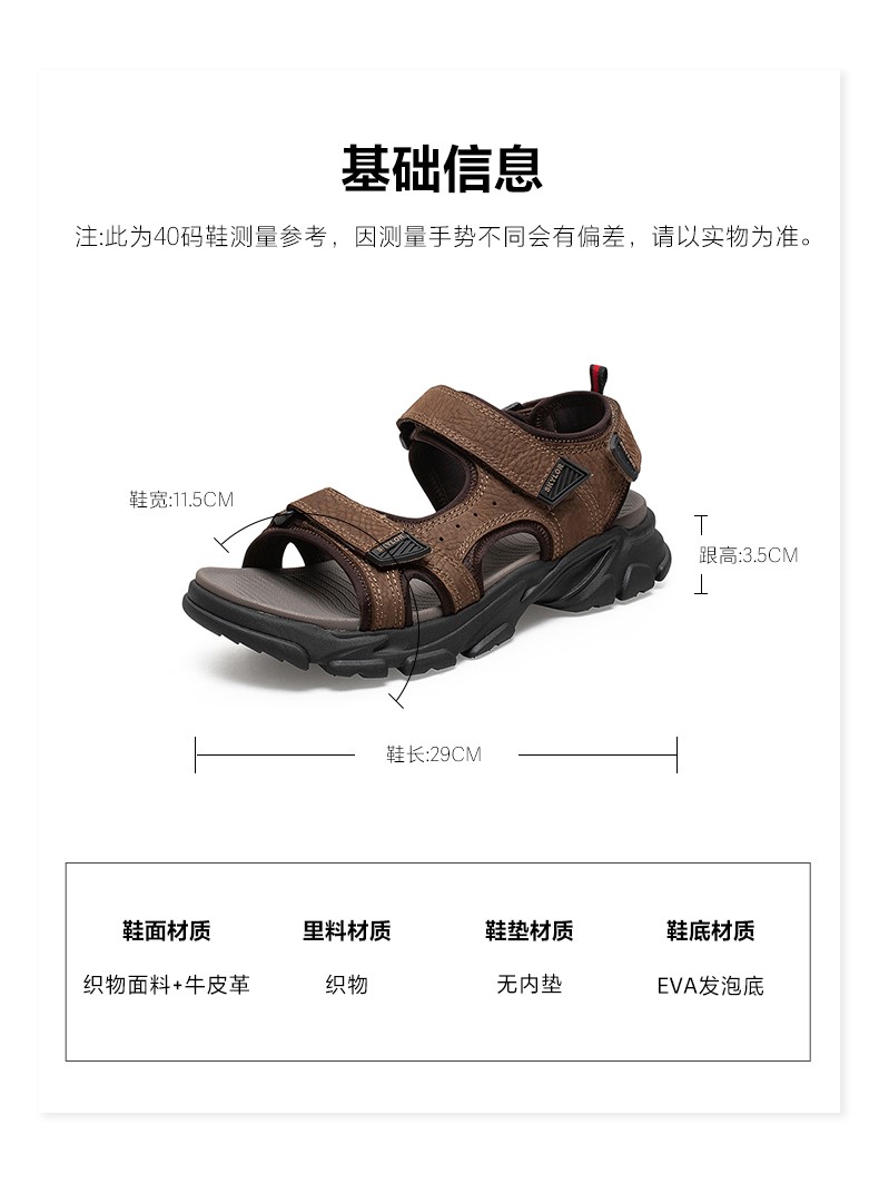 | 40码鞋长参考(男):29CM | 鞋头款式:露趾 | 鞋底材质:EVA发泡底 | 鞋面图案:纯色 | 鞋跟形状:厚底 |