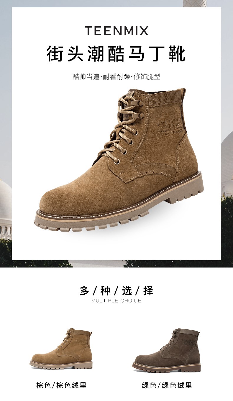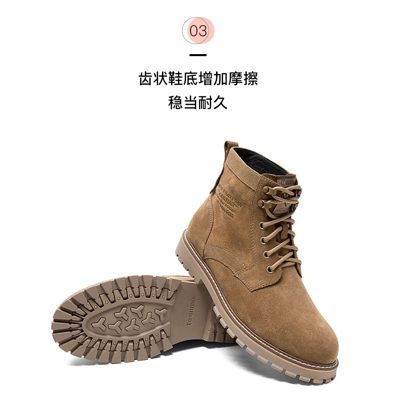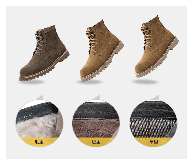 | 40码鞋长参考(男):29CM | 鞋底材质:橡胶底 | 靴筒内里材质:棉 | 内增高:无 | 鞋面材质:牛剖层绒面革 |