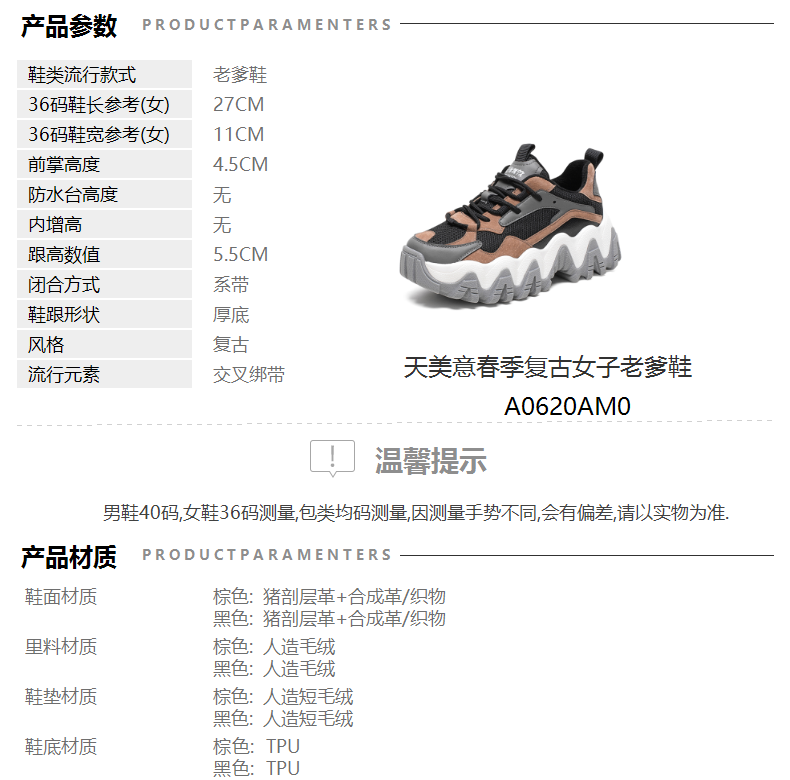 | 所在区域:电子商务 | 货品来源:外购 | 配跟:无 | 开口深度:深口 | 鞋类流行款式:老爹鞋 |