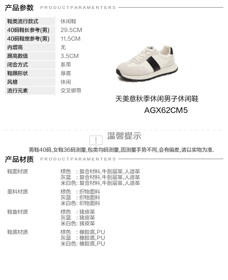 | 风格:休闲 | 色系:米色 | 跟高数值:3.5CM | 40码鞋宽参考(男):11.5CM | 性别:男子 |