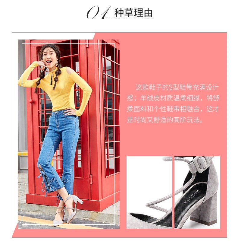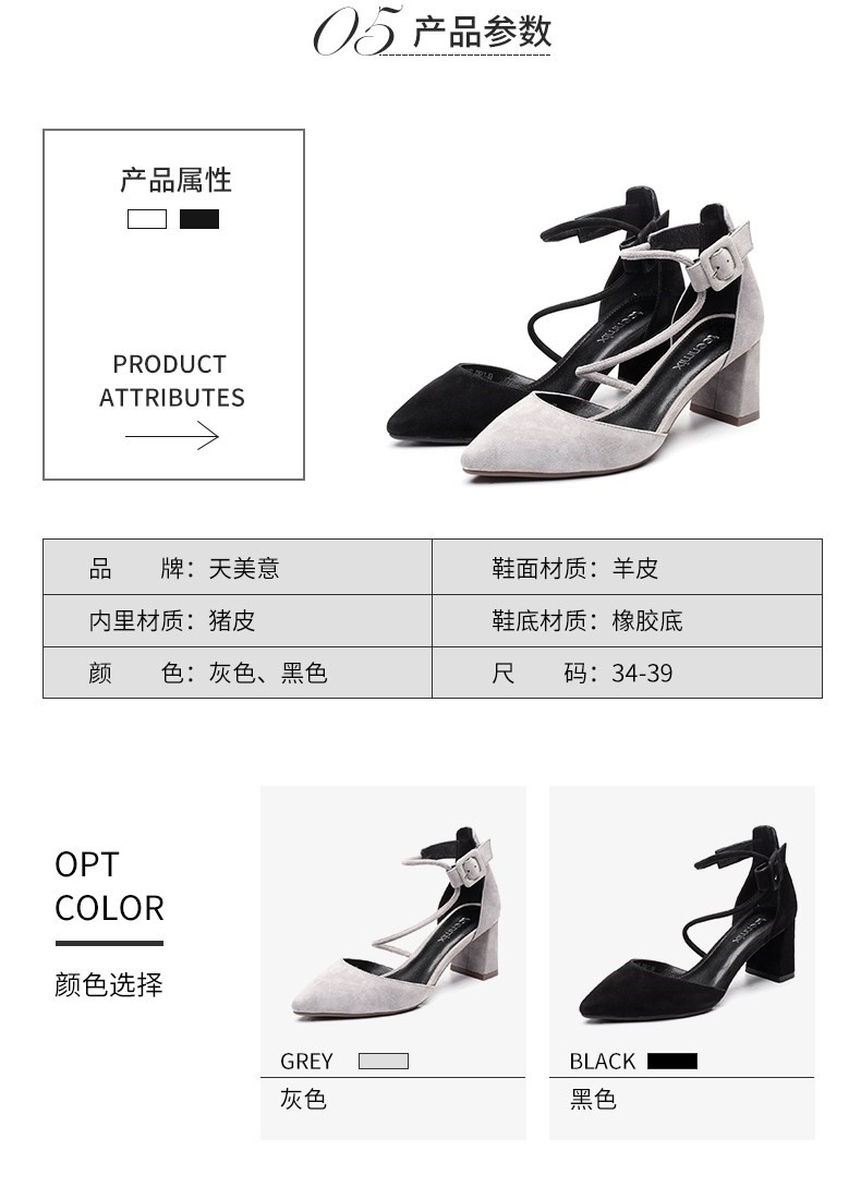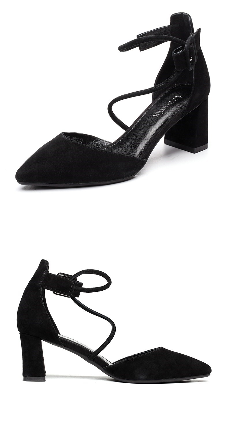 | 鞋头款式:尖头 | 鞋底材质:橡胶底 | 鞋面图案:纯色 | 鞋跟形状:粗跟 | 鞋面材质:羊皮革 |