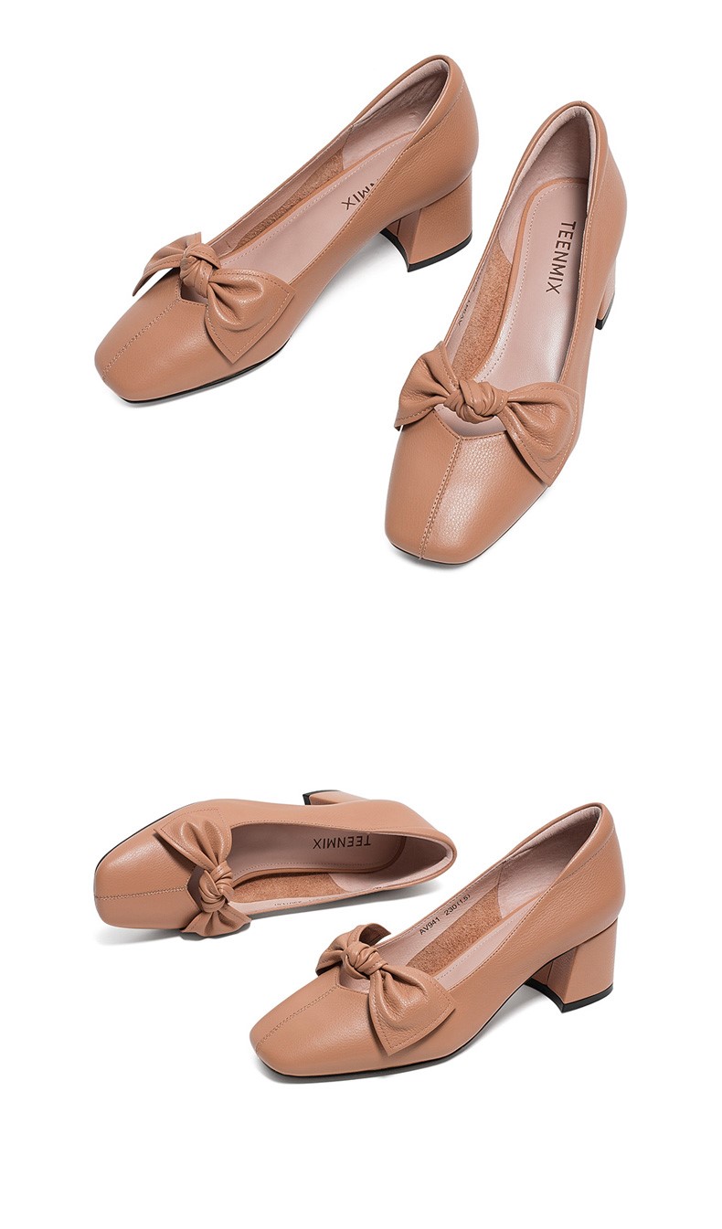 | 鞋头款式:方头 | 跟高范围:中跟鞋(3-5CM) | 鞋面图案:纯色 | 鞋跟形状:粗跟 | 流行元素:蝴蝶结 |