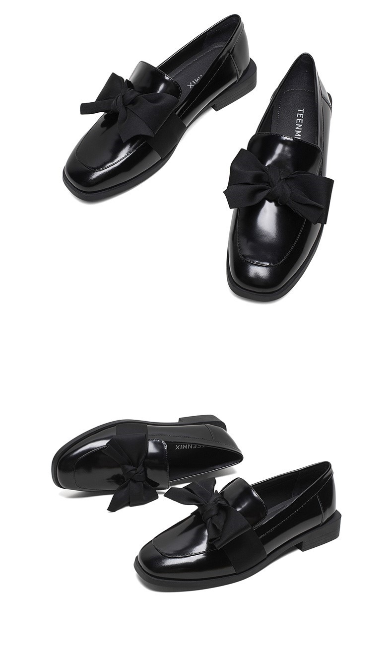 | 鞋头款式:方头 | 跟高范围:低跟鞋(小于3CM) | 鞋面图案:纯色 | 鞋跟形状:方跟 | 流行元素:蝴蝶结 |