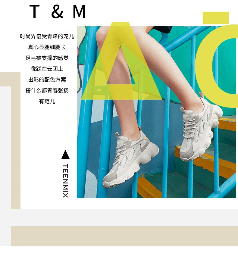 Teenmix(天美意),作为一个都市时尚休闲品牌,倡导“life for fun ,style for teens”即 “人生追求情趣,年轻追求个性”的生活品位,迎合都市年轻人不拘一格,追求mix&match自由组合,创出自我风格的潮流理念。Teenmix向人们展示了流行的转变,强调创意与个性,“teen”代表一群张扬个性、散发活力、追求都市炫彩生活的新新人群;“ mix”即mix&match,代表时尚混搭精神,品牌为年轻人提供恍如贴身订造的时尚潮品,并因应时尚的转变而响应。“随我意,天美意”传达了品牌的主张与个性。