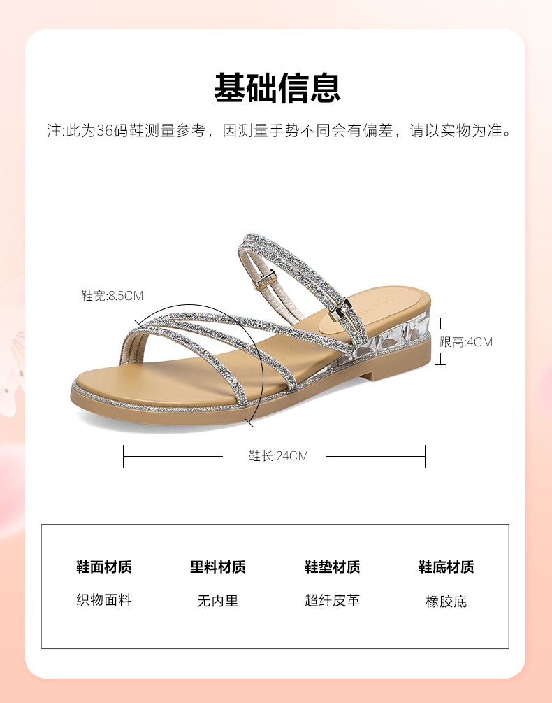 | 皮质特征:织物 | 防水台高度:无 | 鞋类流行款式:拖鞋 |