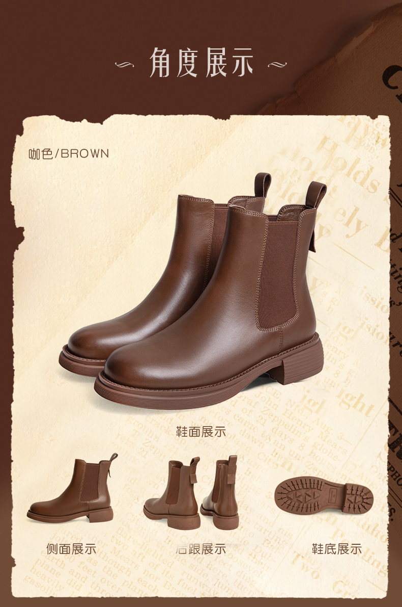 | 帮面材质:牛皮 | 配跟:无 | 靴筒口围:26CM | 上市时间:2025年冬季 | 鞋类流行款式:切尔西靴 |