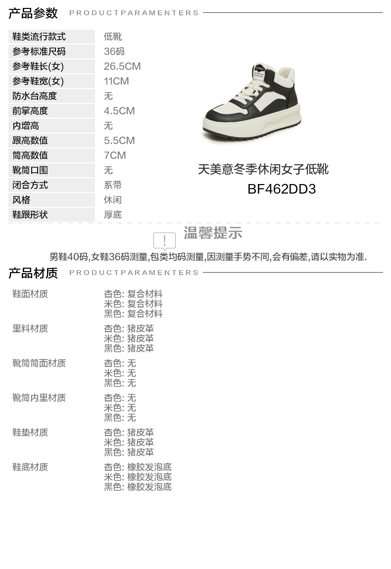 | 皮质特征:合成革 | 防水台高度:无 |