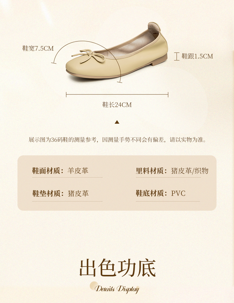 | 鞋面材质:羊皮革 | 流行元素:纯色 | 参考鞋长(女):24CM | 参考鞋宽(女):7.5CM | 闭合方式:套脚 |