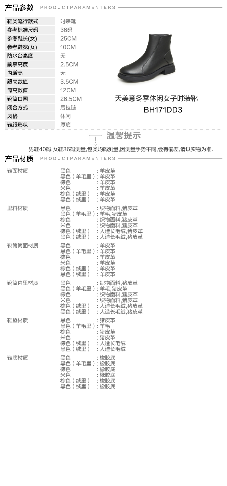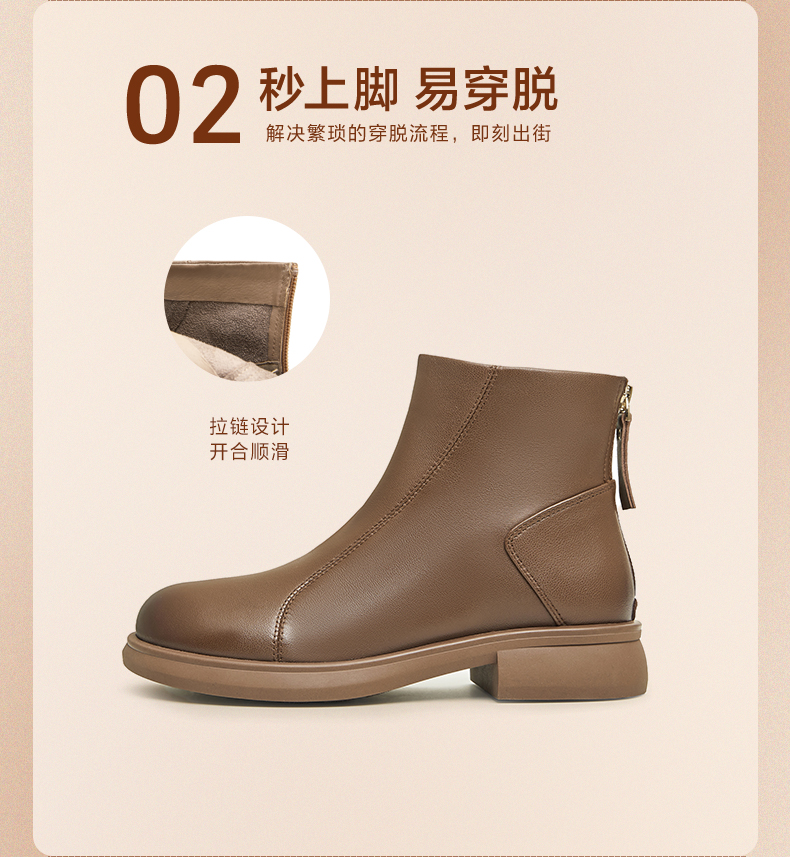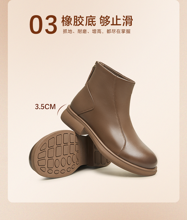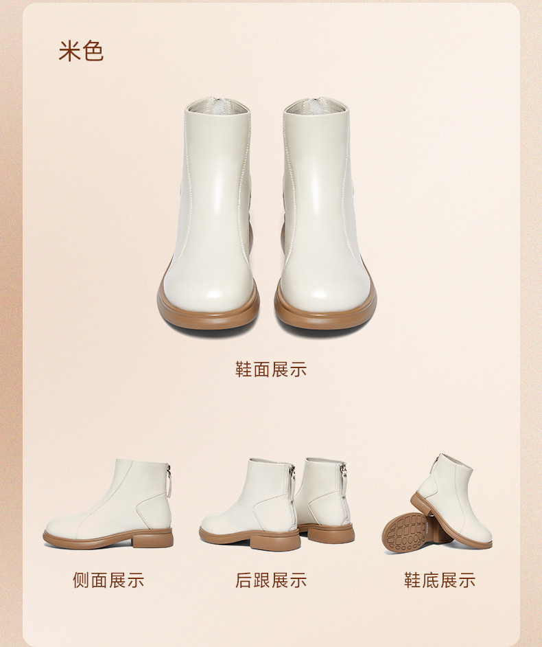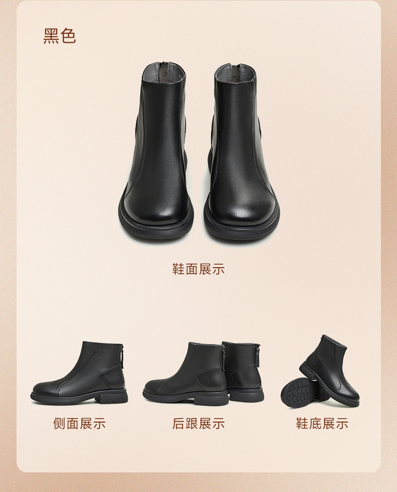 | 鞋底材质:橡胶底橡胶底 | 靴筒内里材质:猪皮革织物面料绒布猪皮革 | 内增高:无无 | 鞋面材质:羊皮革羊皮革 | 闭合方式:后拉链后拉链 |