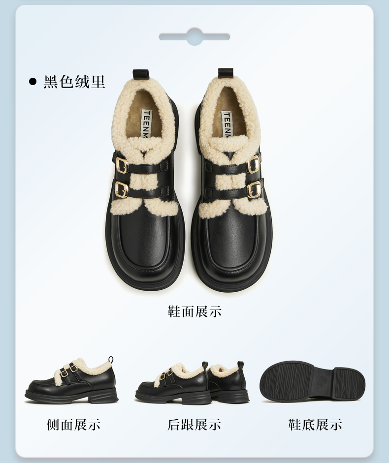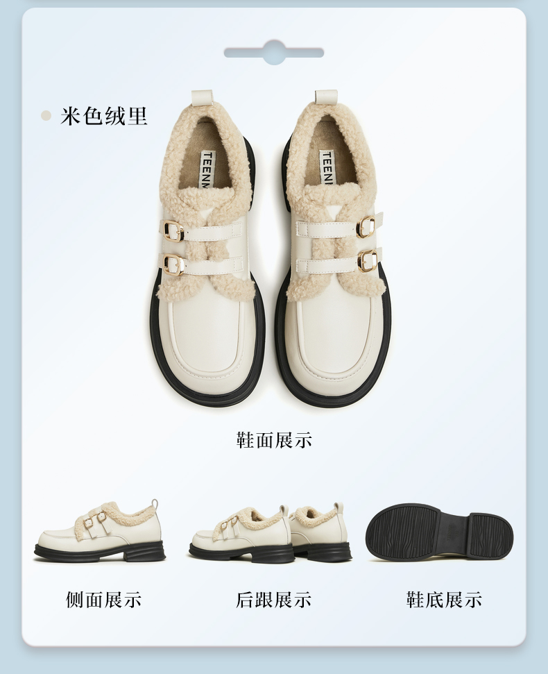 | 性别:女子 | 里料材质:人造短毛绒 | 上市时间:2025年春季 | 制鞋工艺:胶贴皮鞋 | 款式季节:春季 |