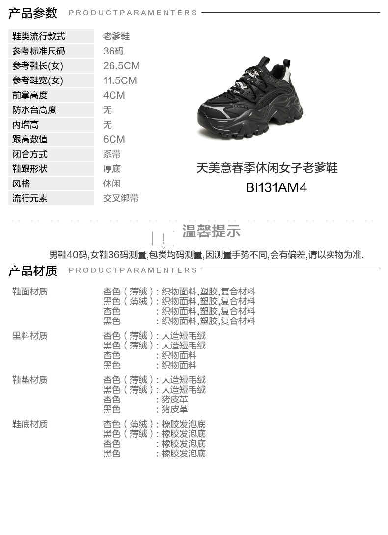 | 风格分类:老爹鞋 | 上市时间:2024年春季 | 生产/经销/进口厂家: | 鞋类流行款式:老爹鞋 | 鞋头款式:圆头 |