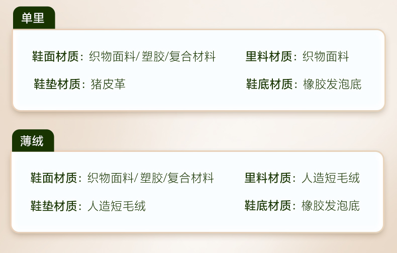 | 鞋帮:低帮 | 功能科技:耐磨 | 鞋底材质:橡胶发泡底 | 内增高:无 | 鞋面材质:塑胶织物面料复合材料 |