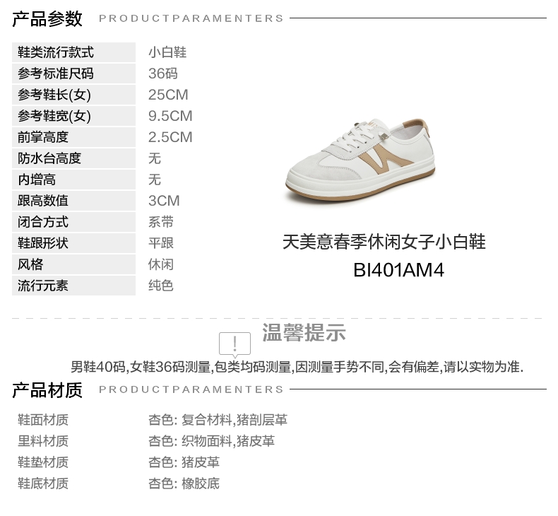 | 参考鞋长(女):25CM | 参考鞋宽(女):9.5CM | 风格:休闲 | 色系:杏色 | 参考标准尺码:36码 |