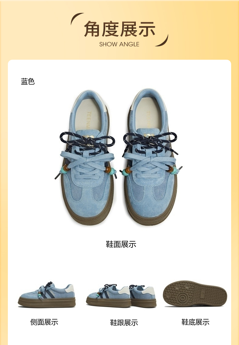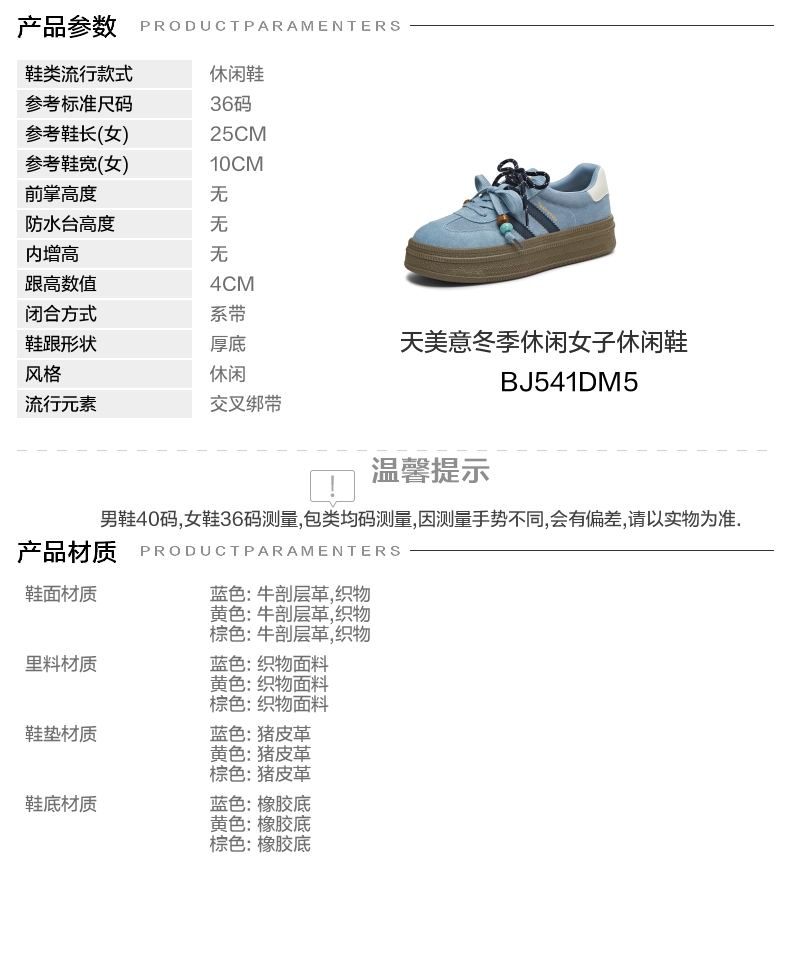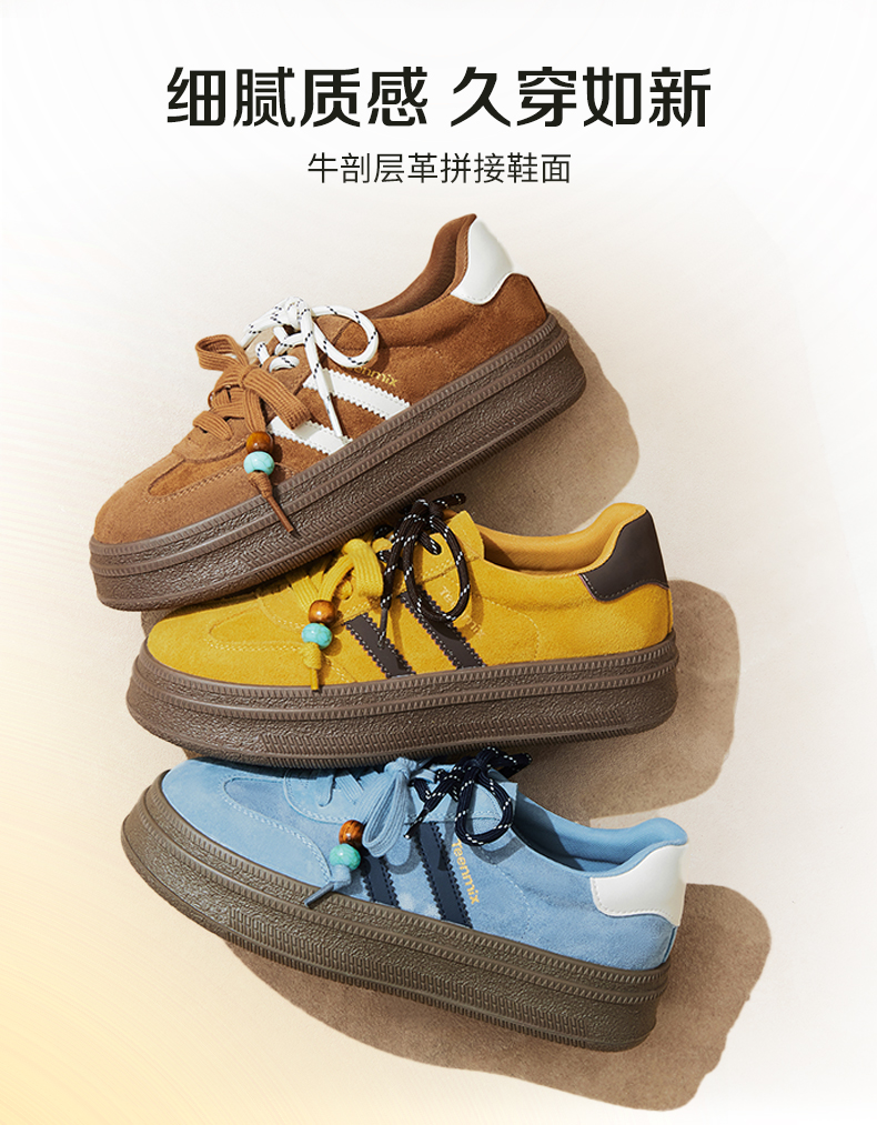 | 鞋帮:低帮 | 鞋底材质:橡胶底 | 内增高:无 | 鞋面材质:织物牛剖层革 | 闭合方式:系带 |