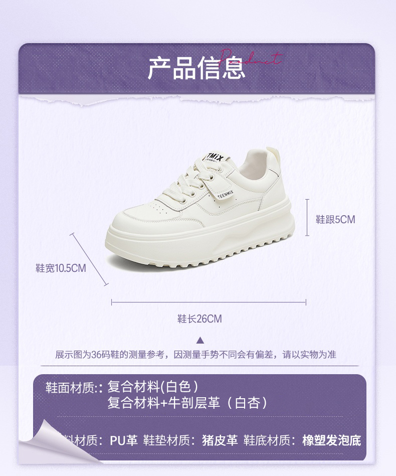 | 鞋垫材质:猪皮革 | 前掌高度:无 | 皮质特征:复合材料/织物 | 鞋类流行款式:小白鞋 |