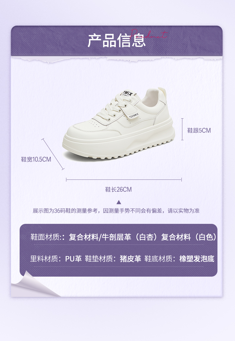 | 鞋垫材质:猪皮革 | 前掌高度:无 | 皮质特征:复合材料/织物 | 鞋类流行款式:小白鞋 |