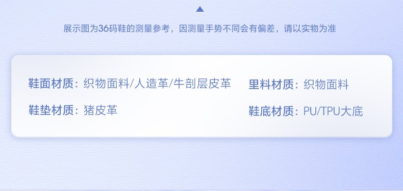 | 鞋帮:低帮 | 功能科技:耐磨 | 鞋底材质:TPR大底PU | 内增高:无 | 鞋面材质:织物面料复合材料人造革牛剖层皮革 |