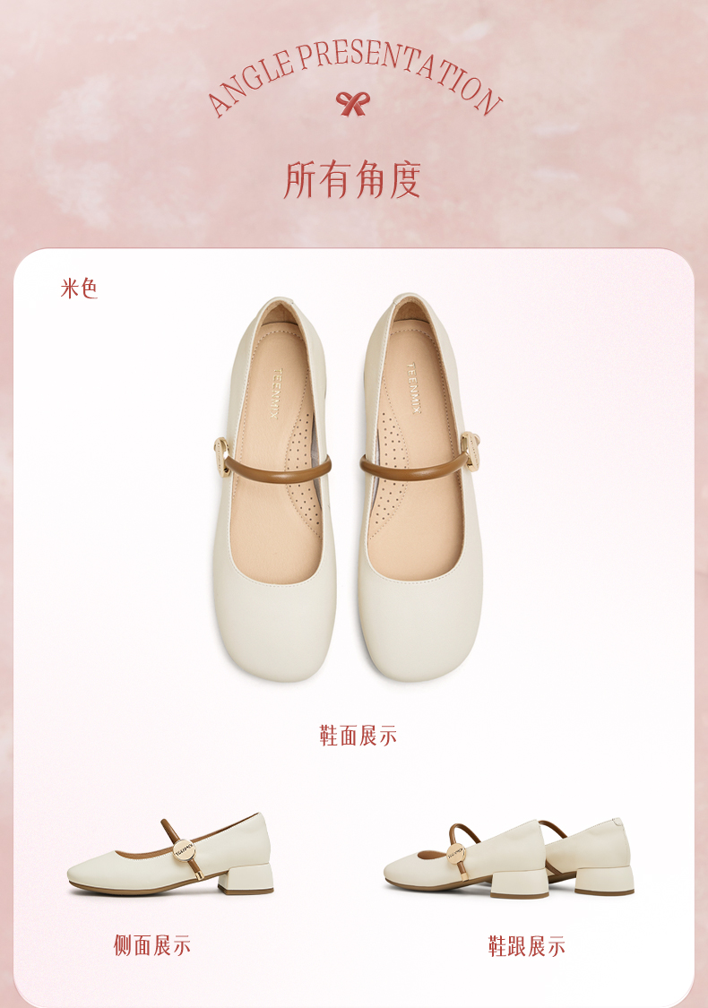 | 皮质特征:牛皮革 | 前掌高度:0.5CM | 防水台高度:无 | 鞋类流行款式:玛丽珍鞋 |