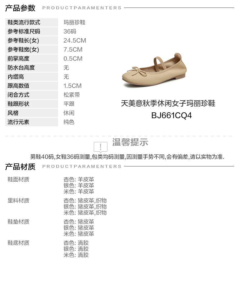 | 皮质特征:羊皮革 | 前掌高度:0.5CM | 防水台高度:无 | 鞋类流行款式:玛丽珍鞋 |