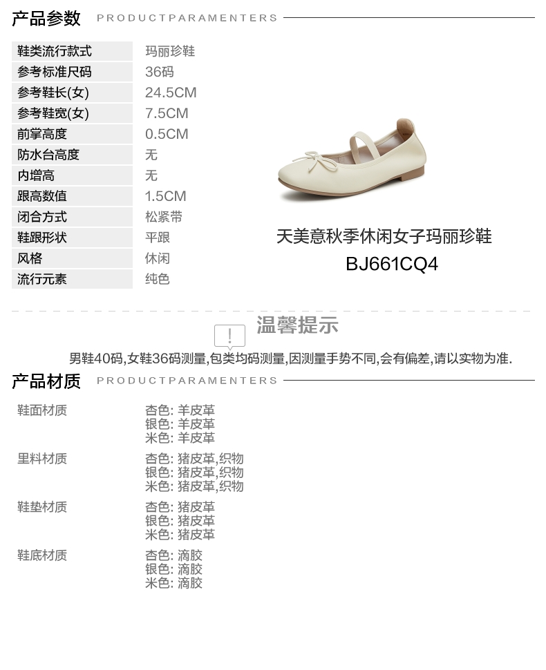 | 皮质特征:羊皮革 | 前掌高度:0.5CM | 防水台高度:无 | 鞋类流行款式:玛丽珍鞋 |