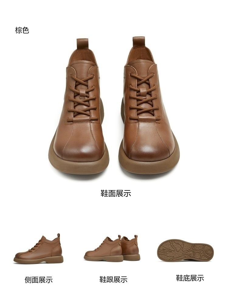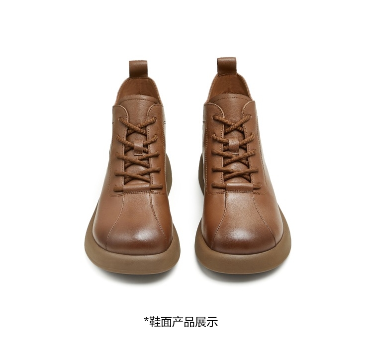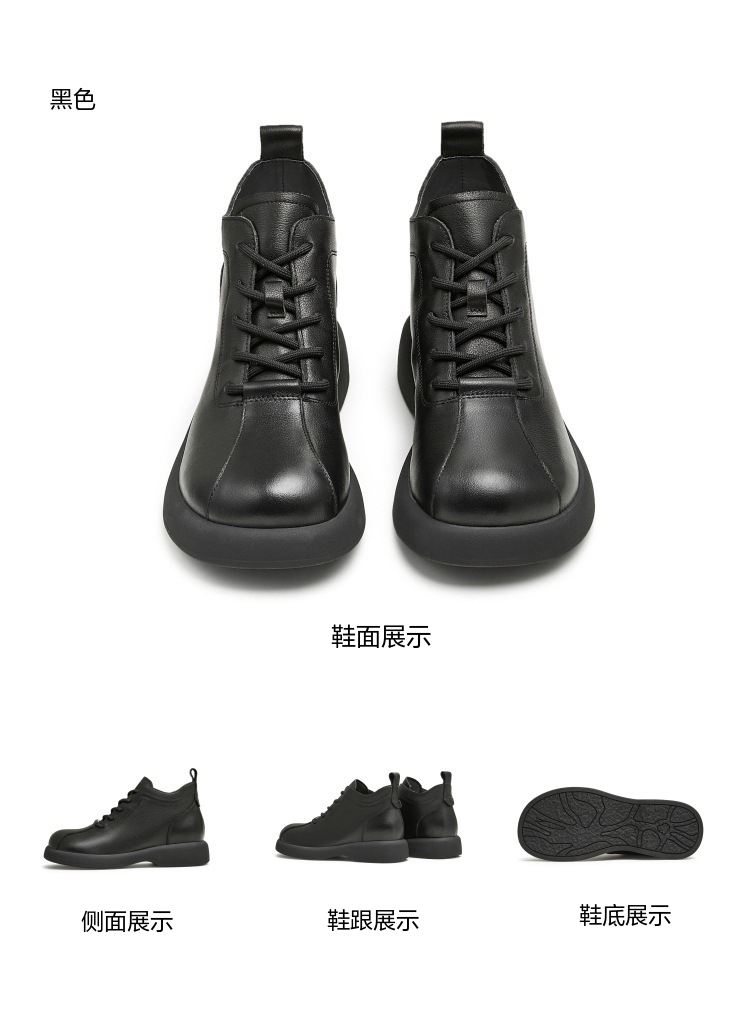 | 鞋底材质:橡胶底 | 靴筒内里材质:猪皮革织物面料 | 内增高:无 | 鞋面材质:牛皮革 | 闭合方式:系带 |
