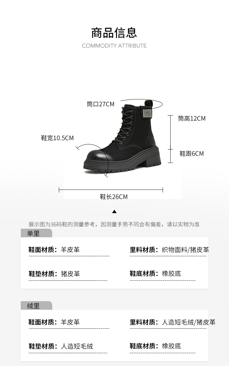 | 帮面材质:羊皮 | 靴筒口围:27CM | 风格分类:马丁靴 | 上市时间:2024年冬季 | 鞋类流行款式:马丁靴 |