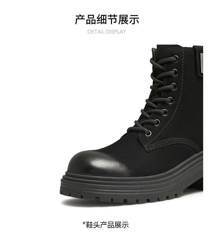 | 里料材质:猪皮革织物面料 | 制鞋工艺:胶贴皮鞋 | 款式季节:冬季 | 鞋垫材质:猪皮革 | 渠道划分:线下同步 |