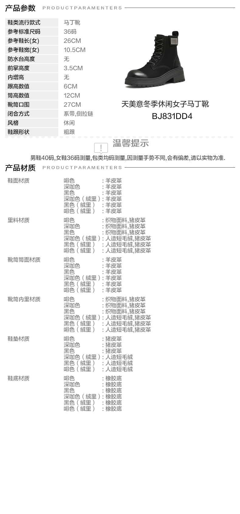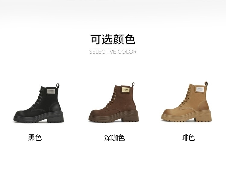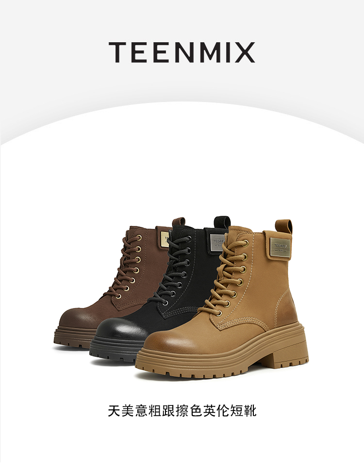 • 天美意2024冬新款商场同款粗跟擦色英伦短靴女马丁靴BJ831DD4