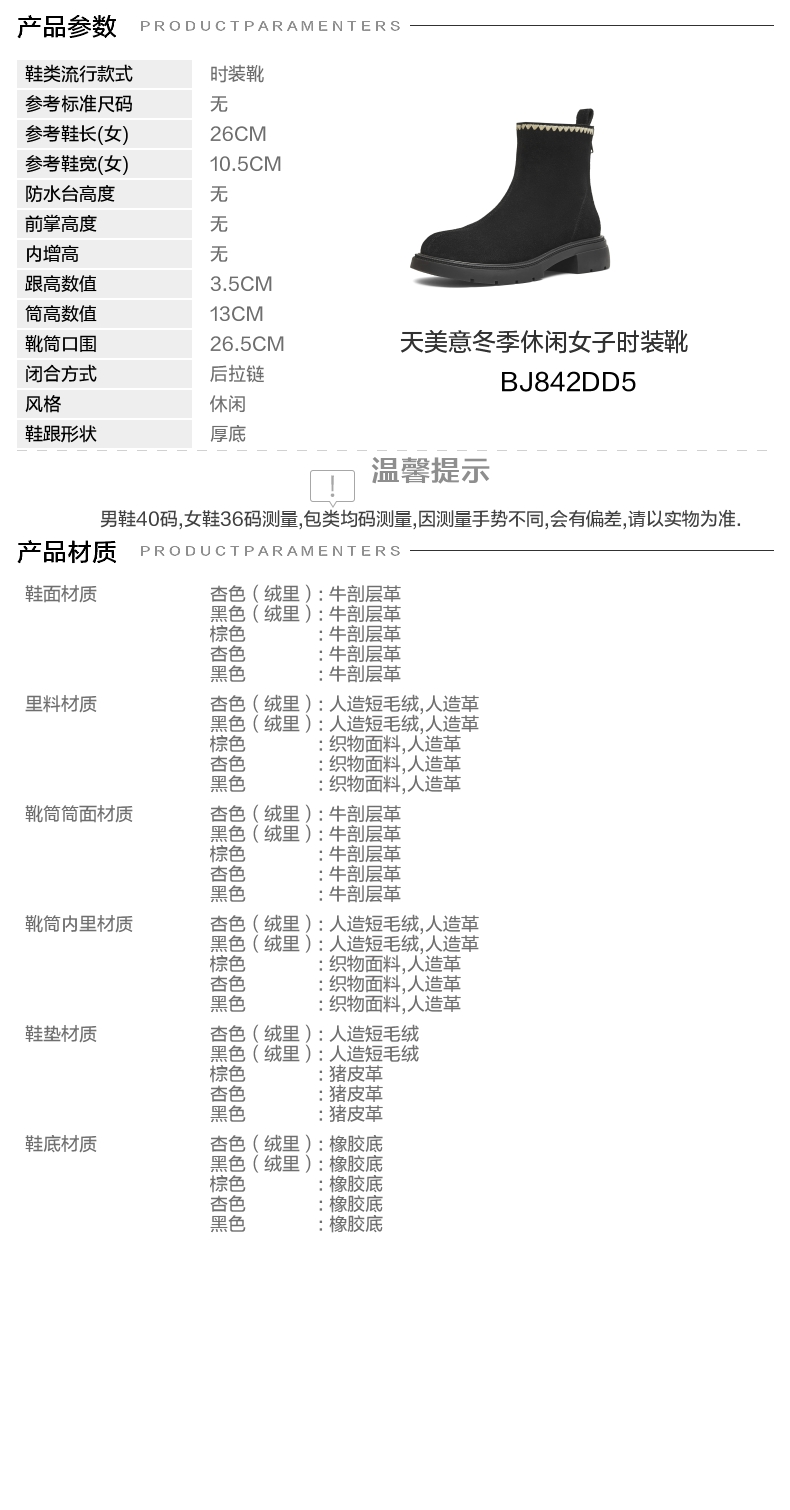 | 款式季节:冬季 | 前掌高度:无 | 皮质特征:二层皮 |