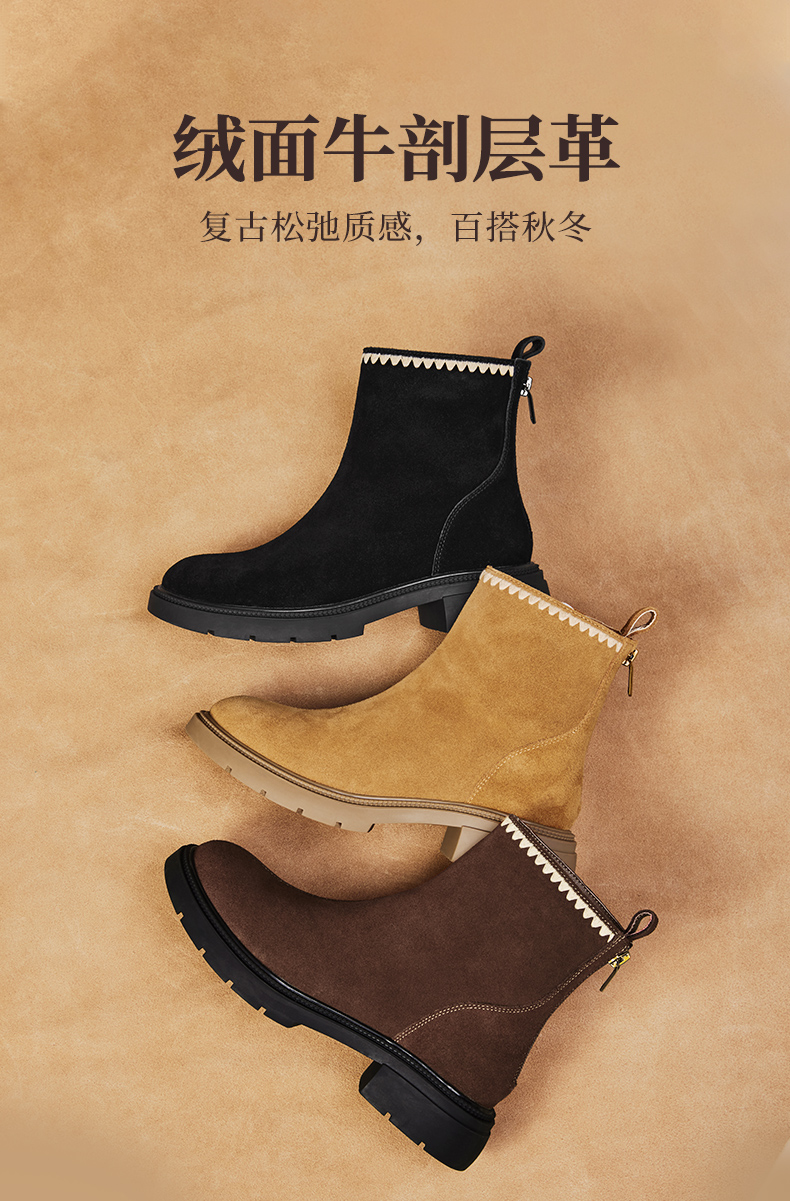 | 鞋底材质:橡胶底 | 靴筒内里材质:人造革人造短毛绒 | 内增高:无 | 鞋面材质:牛剖层革 | 闭合方式:后拉链 |