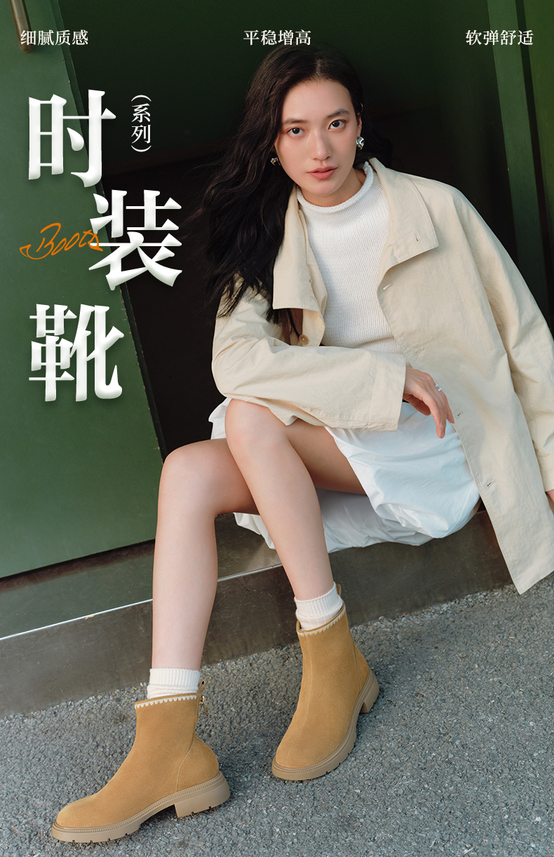 | 帮面材质:牛剖层革 | 配跟:无 | 靴筒口围:26.5CM | 上市时间:2025年冬季 | 鞋类流行款式:时装靴 |