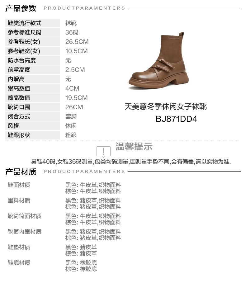| 里料材质:织物面料猪皮革 | 制鞋工艺:胶贴皮鞋 | 款式季节:冬季 | 鞋垫材质:猪皮革 | 渠道划分:线下同步 |
