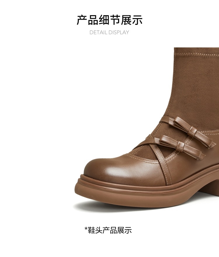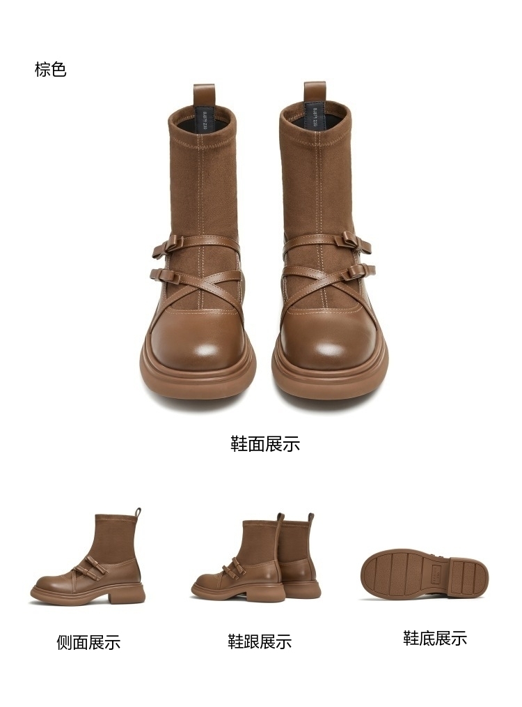 | 帮面材质:织物牛皮革 | 靴筒口围:26CM | 风格分类:袜套靴 | 上市时间:2024年冬季 | 鞋类流行款式:袜靴 |