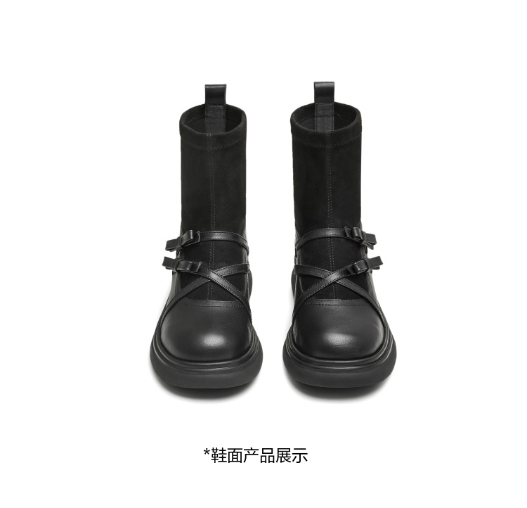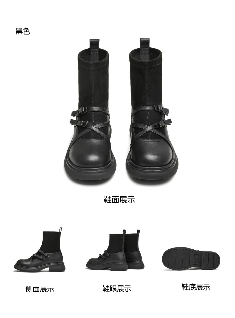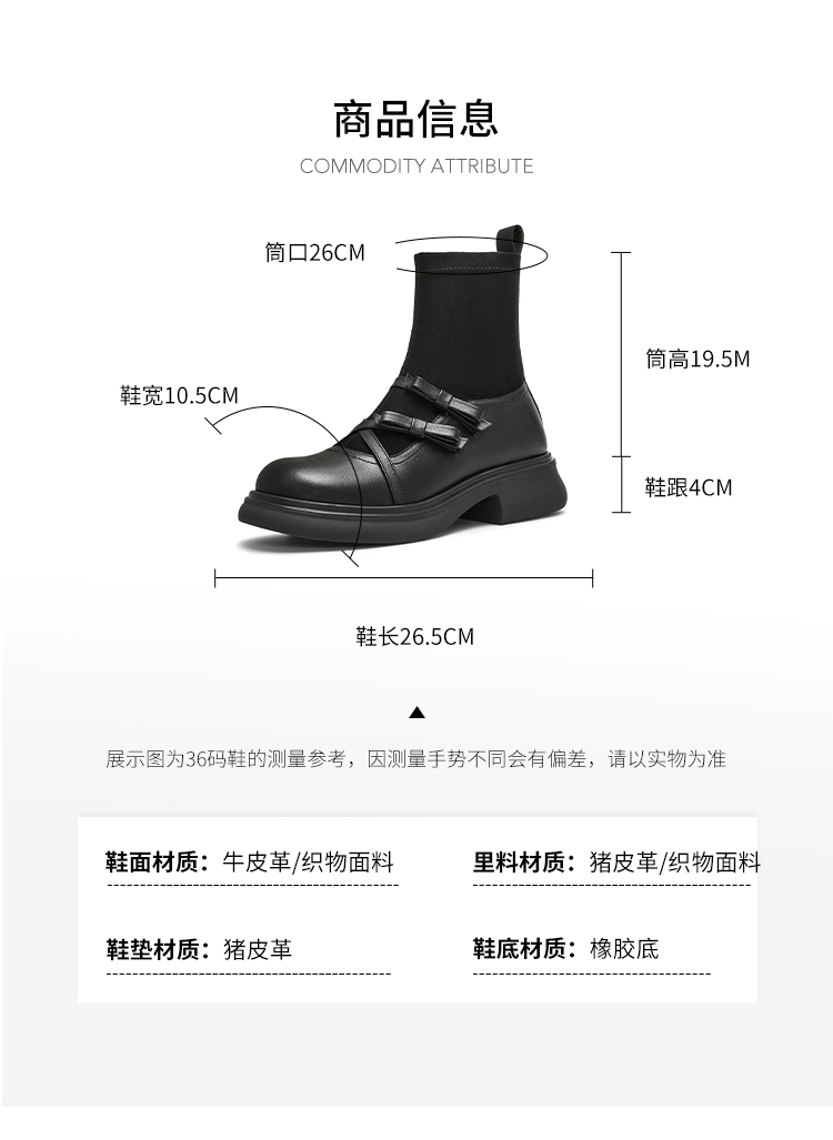 | 帮面材质:织物牛皮革 | 配跟:无 | 靴筒口围:26CM | 上市时间:2024年冬季 | 鞋类流行款式:袜靴 |