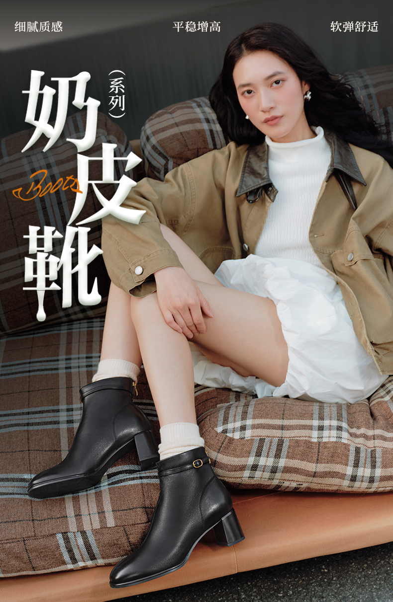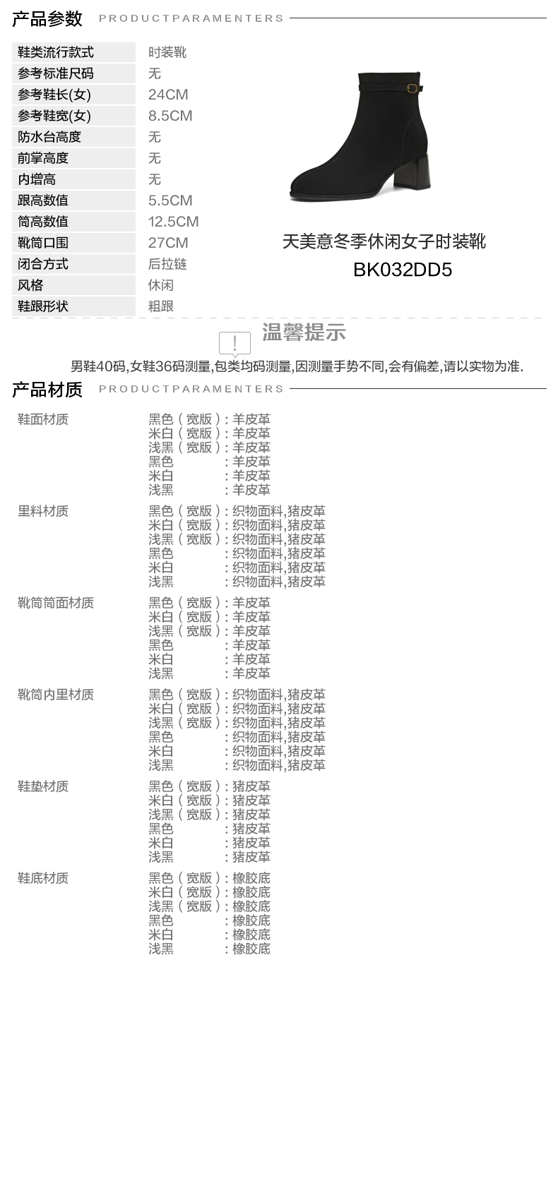 | 筒高数值:12.5CM | 靴筒筒面材质:羊皮革 | 里料材质:猪皮革织物面料 | 制鞋工艺:胶贴皮鞋 | 鞋垫材质:猪皮革 |
