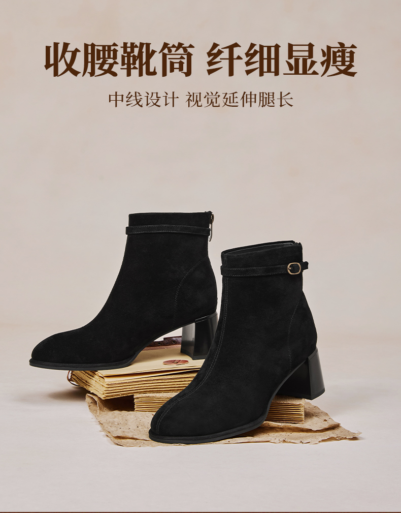 | 鞋底材质:橡胶底 | 靴筒内里材质:猪皮革织物面料 | 内增高:无 | 鞋面材质:羊皮革 | 闭合方式:后拉链 |