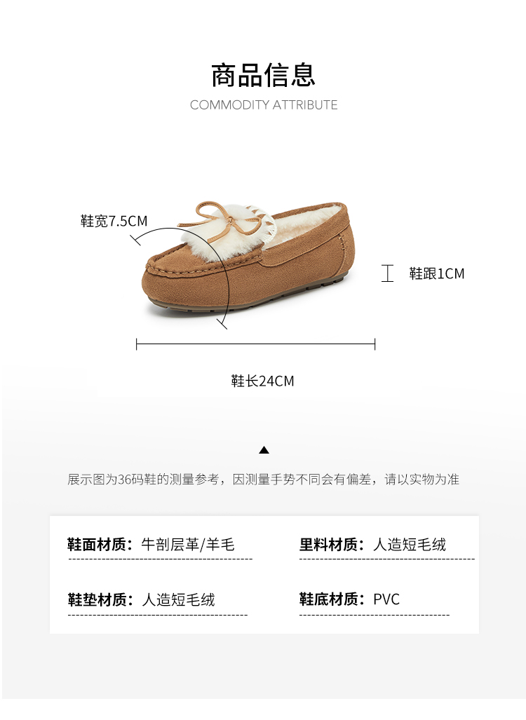 | 鞋帮:低帮 | 功能科技:耐磨 | 鞋底材质:PVC | 内增高:无 | 鞋面材质:牛剖层革羊毛 |