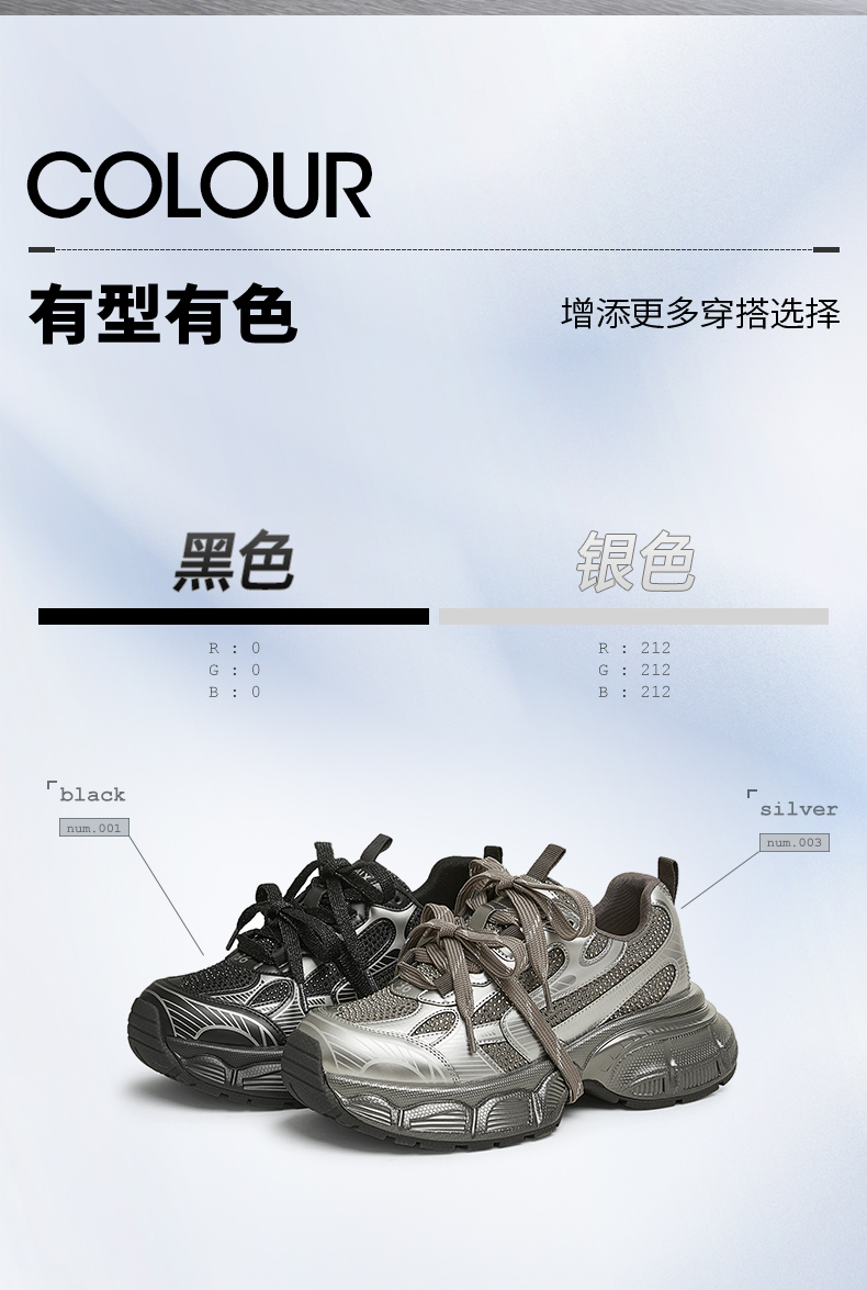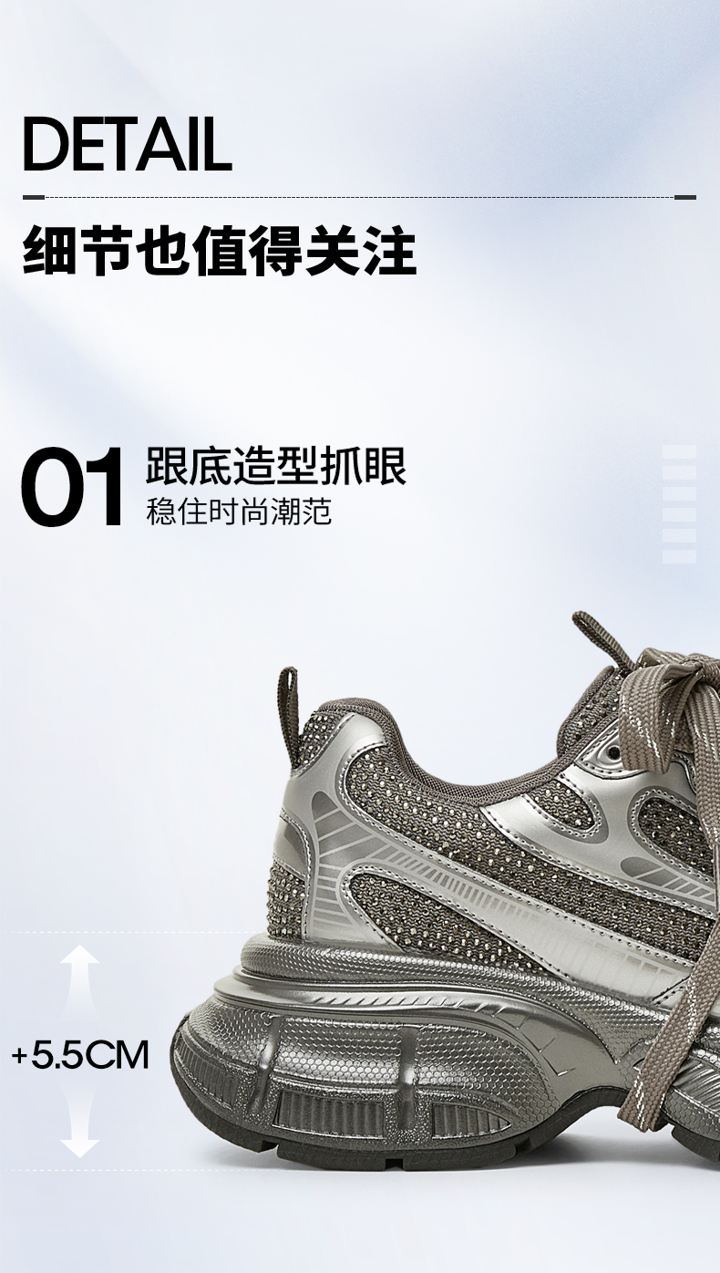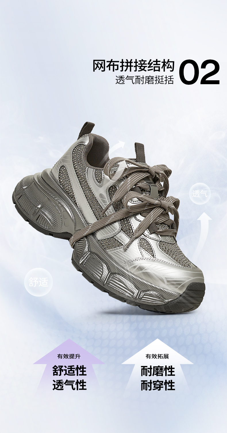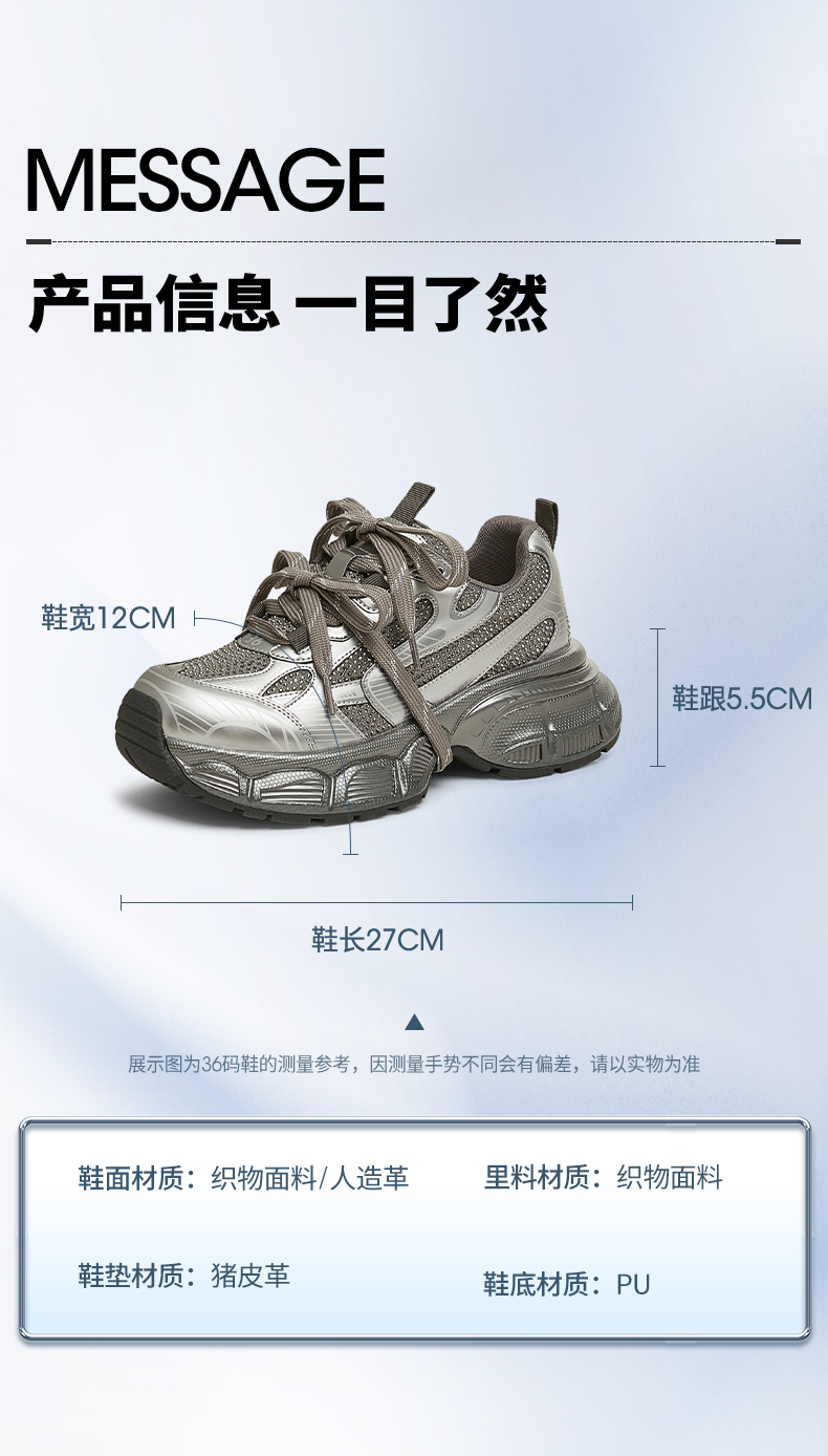 | 风格分类:老爹鞋 | 上市时间:2025年春季 | 鞋类流行款式:老爹鞋 | 鞋头款式:圆头 | 执行标准:舒适运动鞋Q/LR002-2023 |