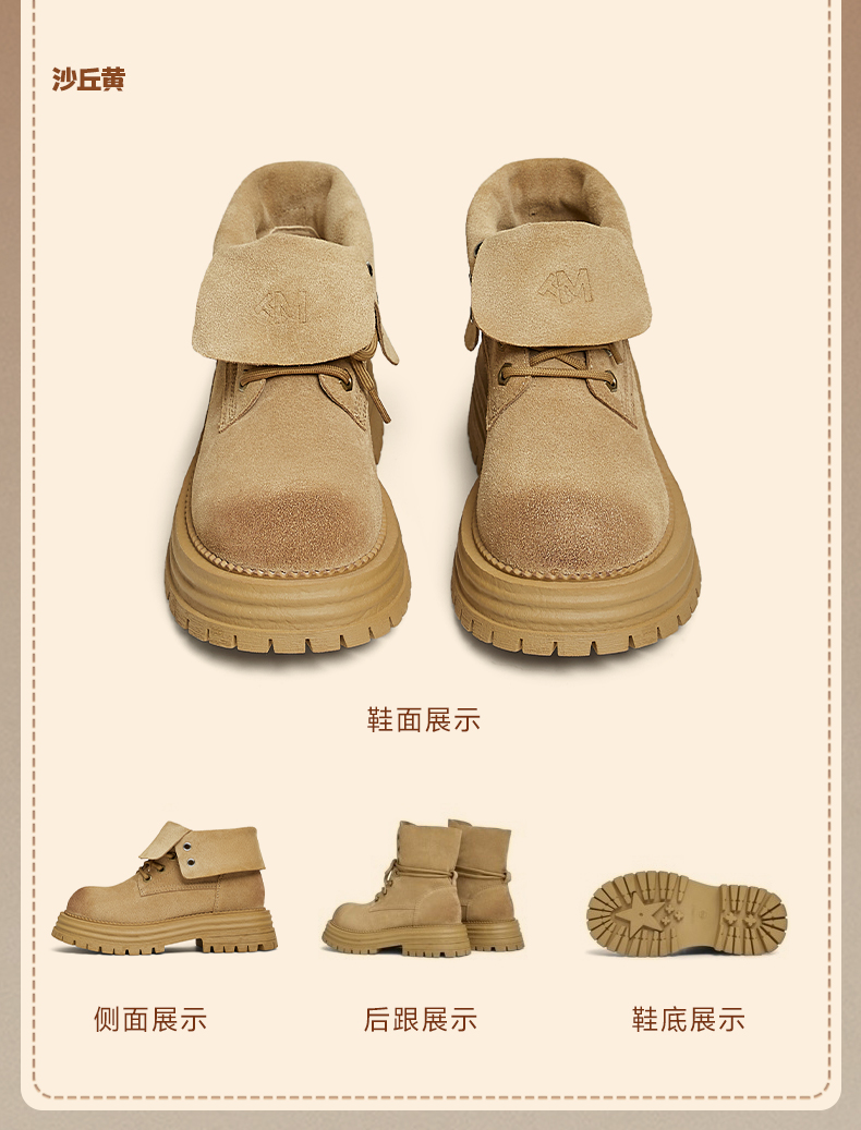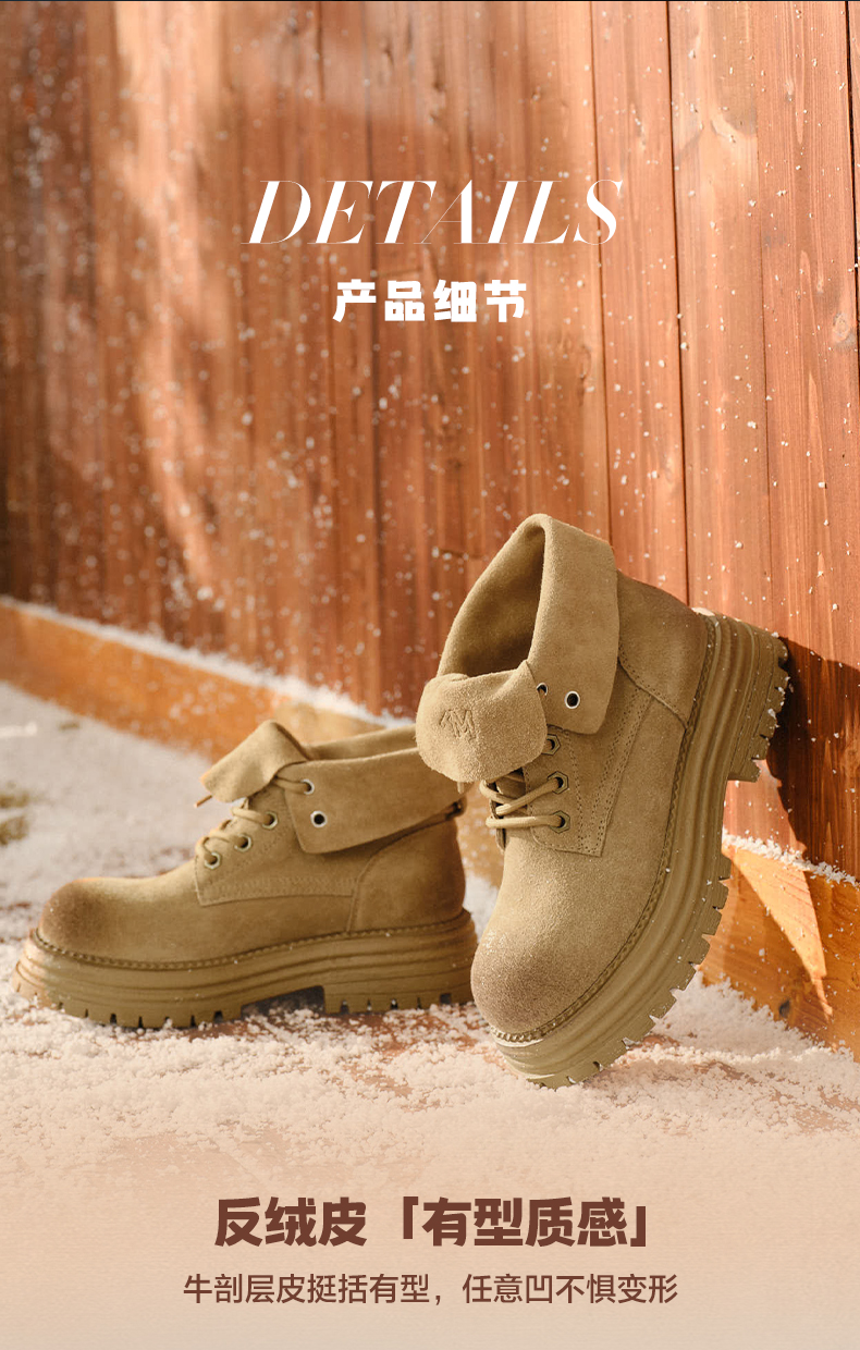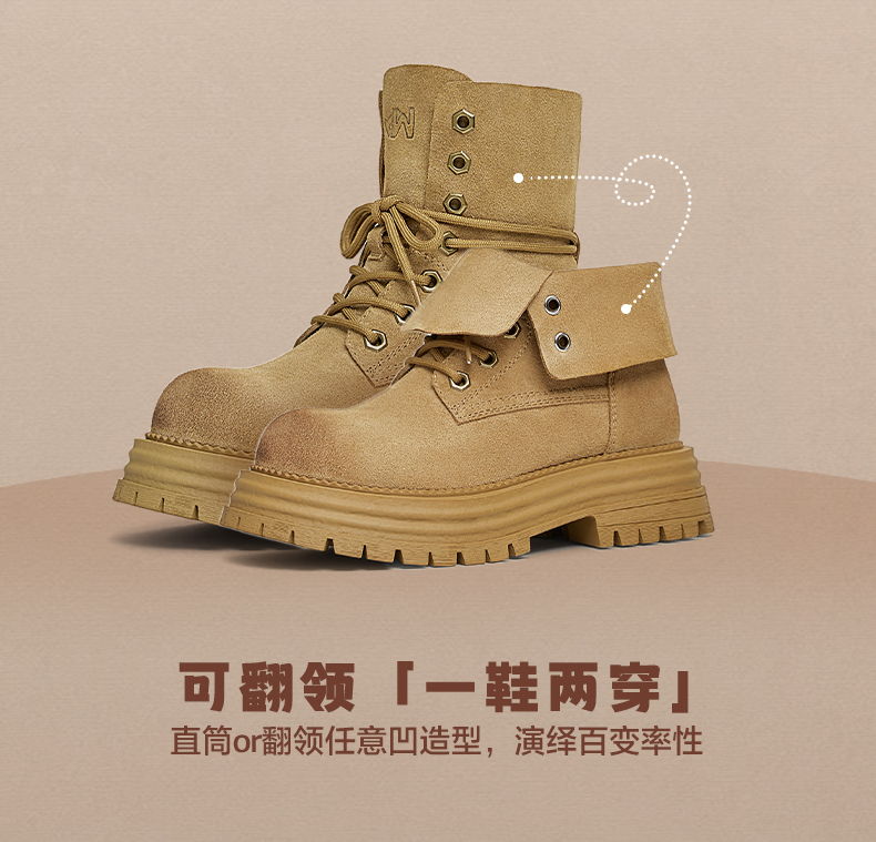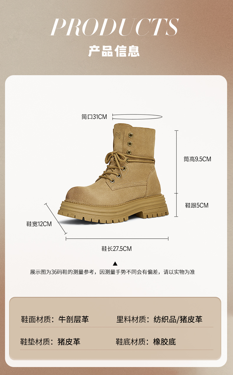 | 帮面材质:牛剖层革 | 配跟:无 | 靴筒口围:31CM | 上市时间:2024年冬季 | 鞋类流行款式:马丁靴 |