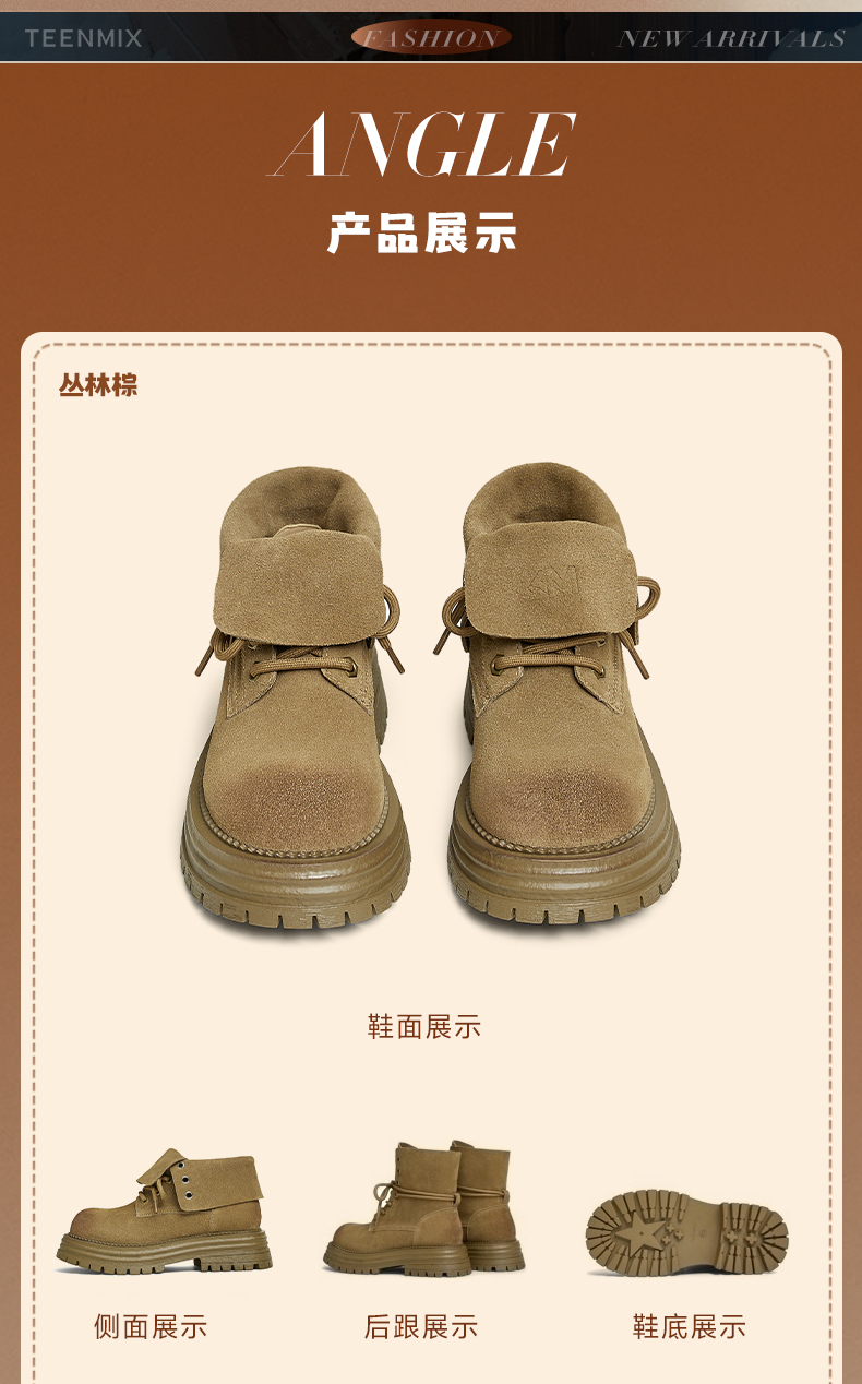 | 参考鞋宽(女):12CM | 风格:休闲 | 色系:卡其 | 跟高数值:5CM | 筒高数值:9.5CM |