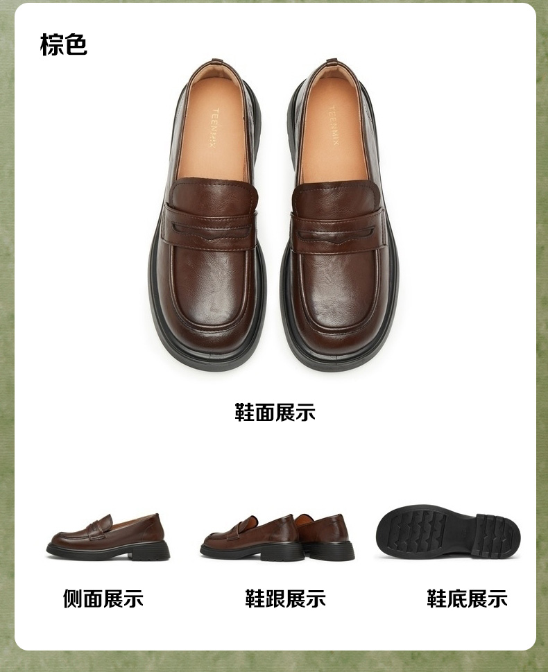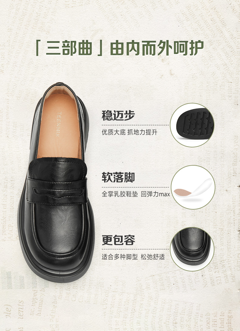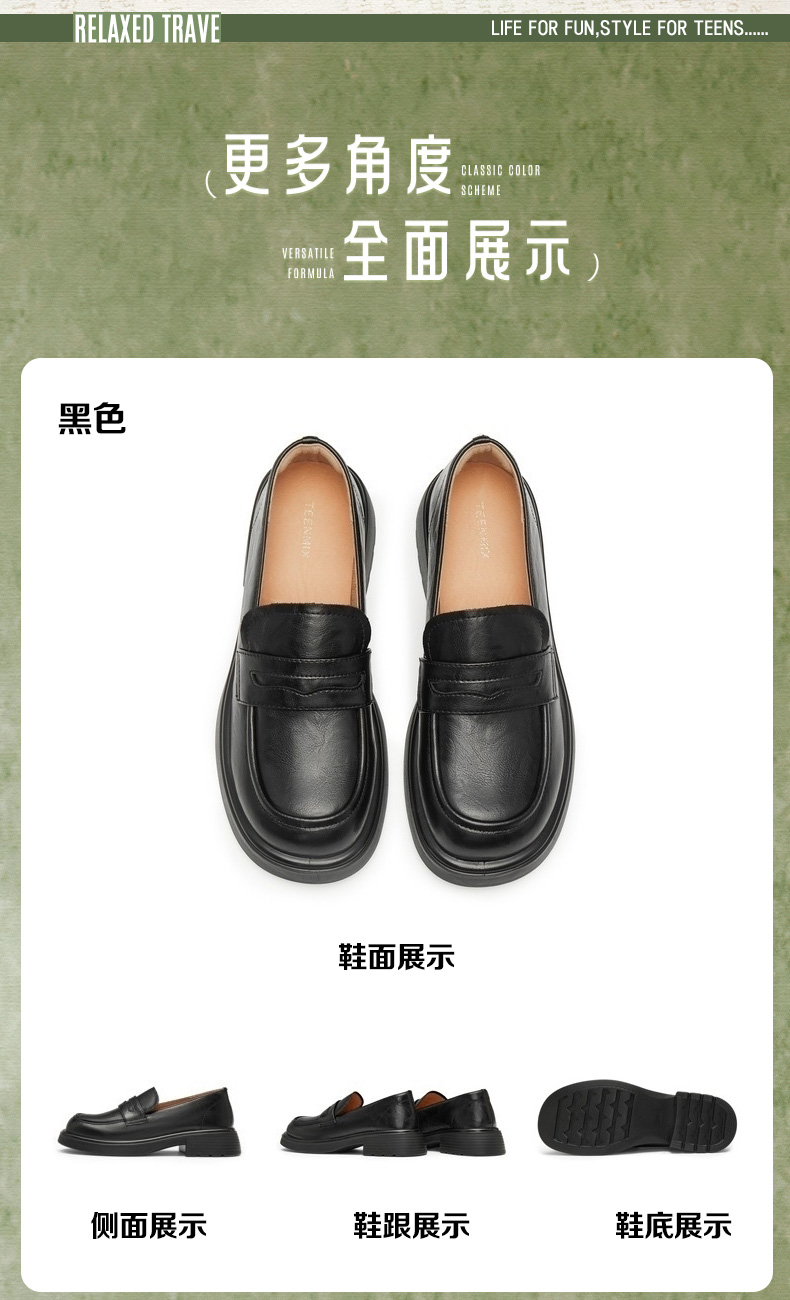 | 配跟:无 | 上市时间:2025年春季 | 鞋类流行款式:乐福鞋 | 鞋头款式:圆头 | 鞋面图案:纯色 |