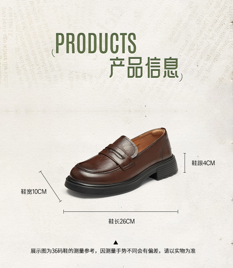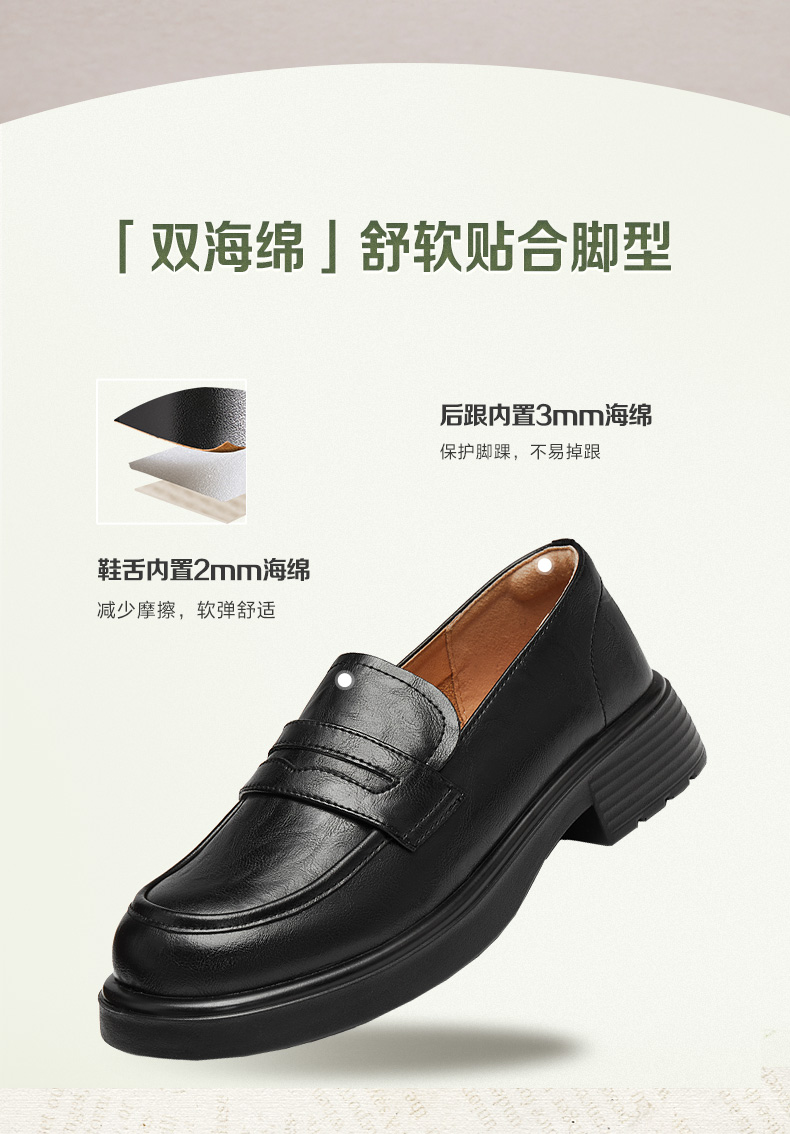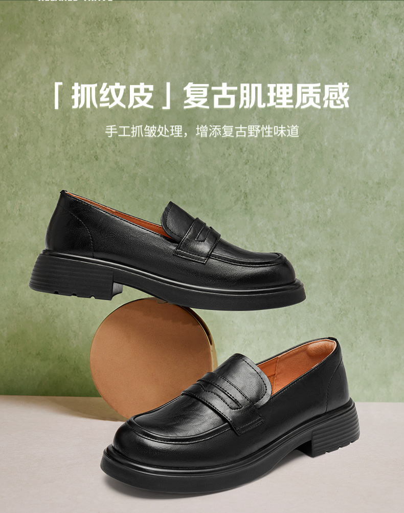 | 配跟:无 | 上市时间:2025年秋季 | 鞋类流行款式:乐福鞋 | 鞋头款式:圆头 | 鞋面图案:纯色 |