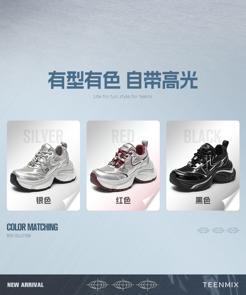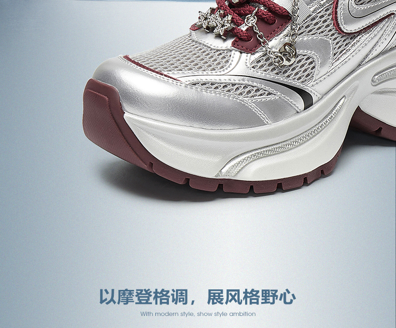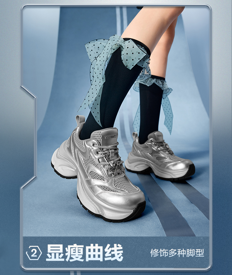 | 风格分类:老爹鞋 | 上市时间:2025年春季 | 鞋类流行款式:老爹鞋 | 鞋头款式:圆头 | 执行标准:舒适运动鞋Q/LR002-2023 |