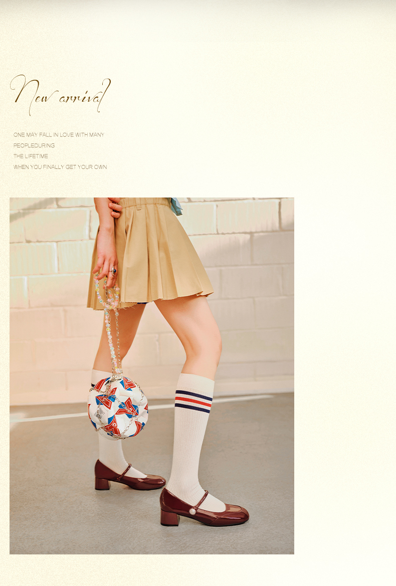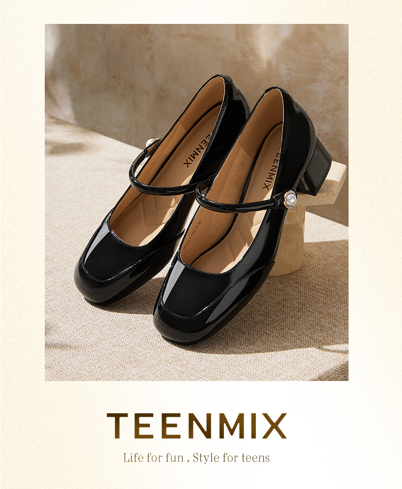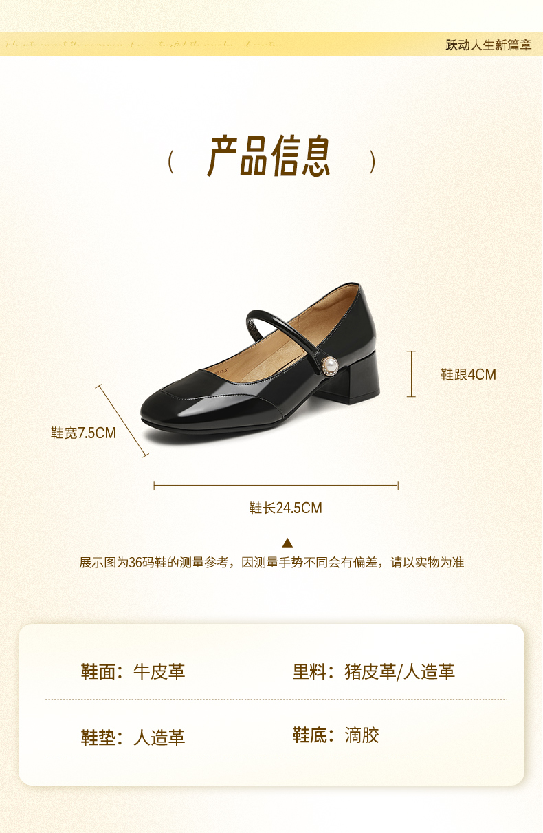 | 上市时间:2025年春季 | 鞋类流行款式:玛丽珍鞋 | 鞋头款式:圆头 | 跟高范围:中跟鞋(3-5CM) | 鞋面图案:纯色 |