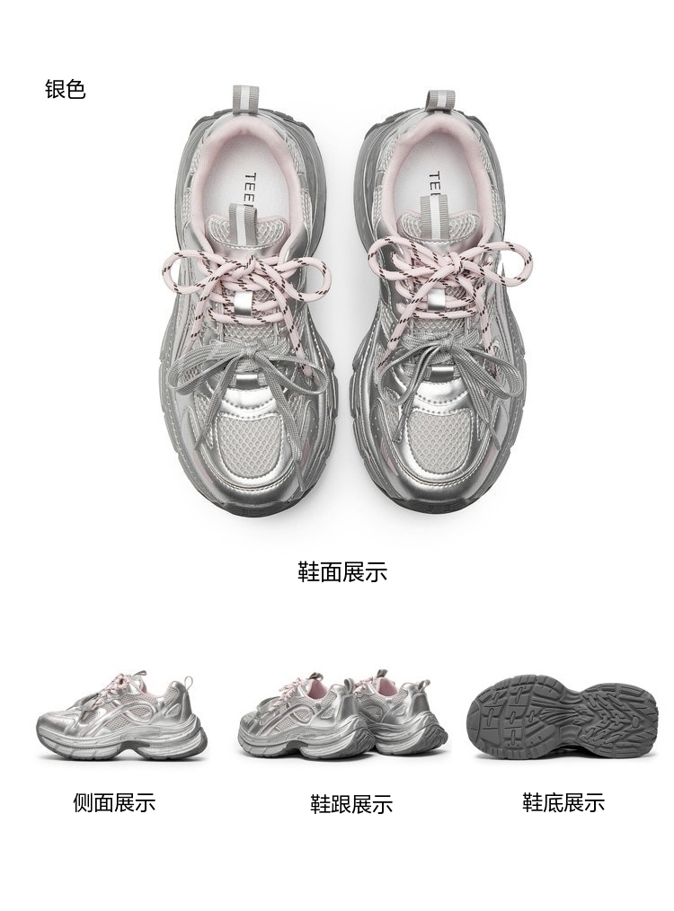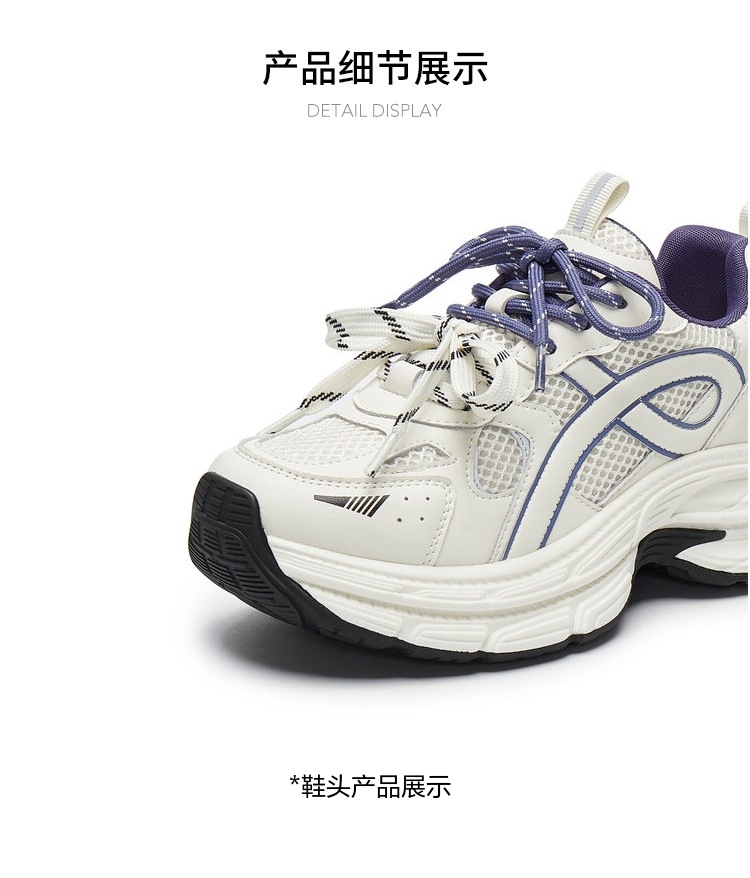 | 风格分类:老爹鞋 | 上市时间:2025年春季 | 鞋类流行款式:老爹鞋 | 鞋头款式:圆头 | 执行标准:舒适运动鞋Q/LR002-2023 |