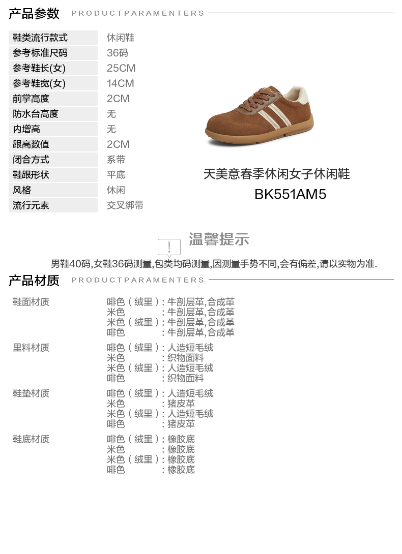 | 参考鞋宽(女):14CM | 风格:休闲 | 年份:2025年 | 色系:啡色 | 参考标准尺码:36码 |