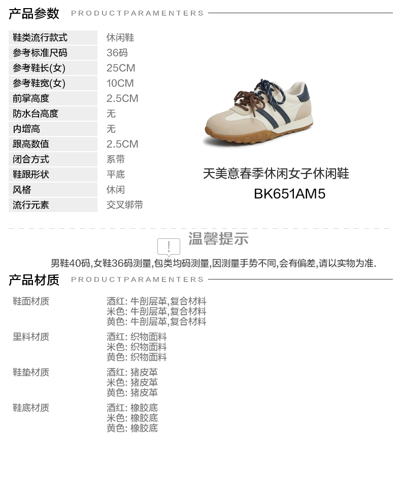 | 参考鞋宽(女):10CM | 风格:休闲 | 年份:2025年 | 色系:米色 | 参考标准尺码:36码 |