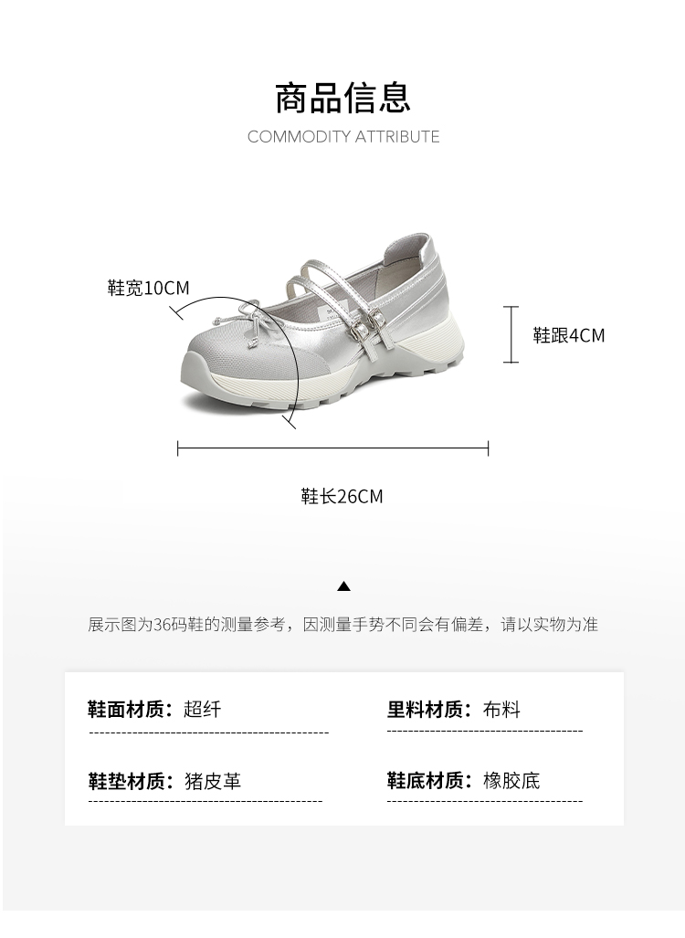 | 年份:2025年 | 色系:银色 | 参考标准尺码:36码 | 跟高数值:4CM | 性别:女子 |